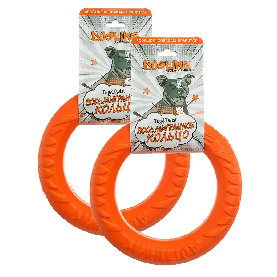 Восьмигранное усиленное кольцо - отличный снаряд для апортировки и игры с собакой. В набор входит 2 малых кольца 2 сорта, имеющих незначительное отклонение во внешнем виде от колец 1 сорта. Эти отклонения не влияют на физико-технические и эксплуатационные свойства колец, но при этом позволяют существенно сэкономить. Характеристики: Размер: диаметр 20 см, толщина 3,5 см. Кольцо идеально подходит для собак ростом 30-40 см и весом от 5 до 10 кг. Кольцо изготовлено из композитного материала по усиленной формуле, прочное и износостойкое. Питомец обязательно оценит такую игрушку и ответит любовью, здоровьем и отличным настроением! Снаряд не тонет в воде и имеет малый вес - это позволяет Вашему питомцу не только получать удовольствие от плавания, но и обеспечивает нагрузкой все группы мышц. Разнообразие упражнений: перетягивание кольца, подвешивание на высоте, апортирока, обучение командам: «дай», «взять» и т.д. Яркое оранжевое кольцо хорошо заметно на снегу, воде и в траве. Восьмигранное сечение не позволяет кольцу прокручиваться в руке. Характеристики: Размер: диаметр 20 см, толщина 3,5 см. Кольцо идеально подходит для собак ростом 30-40 см и весом от 5 до 10 кг. Сохраняют эластичность -50 +50.Экологический чистый материал.Материал: ЭВА.Производство: Россия.