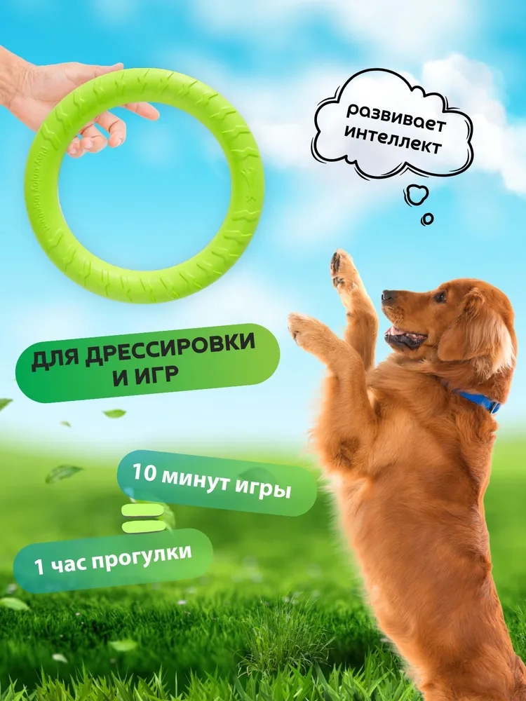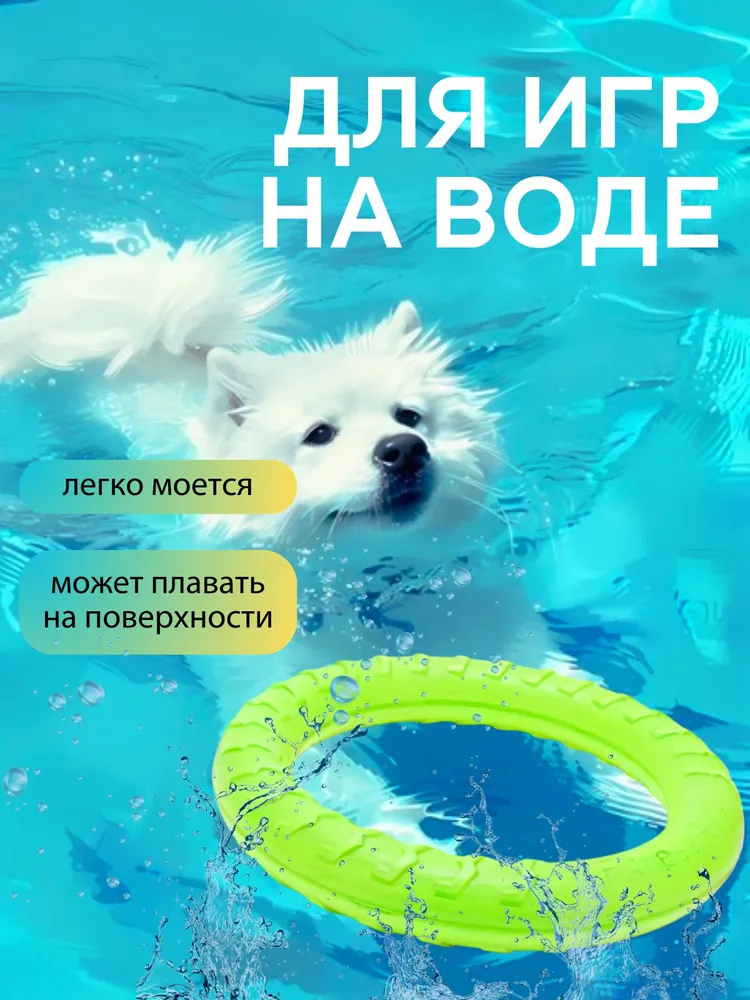 Игрушка для собак кольцо пуллер. Для средних и крупных пород.Кольцо-пуллер для собак – идеальная игрушка для активных игр и дрессировки.- Легкое;- Прочное;- Эластичное;- Экологичное. Безопасный материал EVA.Ищете универсальную игрушку для своего питомца? Кольцо-пуллер станет лучшим выбором!Игрушка, которая поддерживает здоровье и развивает интеллект вашего питомца.Преимущества кольца-пуллера.✔ Идеально для тренировок: 10 минут игры с кольцом заменяют час прогулки.✔ Поддерживает здоровье: прокусывая зубами кольцо, собака получает огромное удовольствие при этом массирует десны, чистит зубной камень и снимает стресс.✔ Универсальность: не потопляемый, подходит для игр на суше и в воде.✔ Яркий цвет: собака хорошо видит кольцо и в траве и на снегу.✔ Подходит для отработки команд: неси / дай, дай / взять, апортировки, перетягивания.✔ Безопасный материал: изготовлен из прочного EVA-материала, который не имеет запаха, держит форму, мягкий, эластичный и гибкий.✔ Практичный: грязь не въедается в материал, легко моется после использования.✔ Гипоаллергенный: абсолютно безопасен для животного, изготовлен из безопасного материала EVA, специально для собак крупных пород.Развивает интеллект вашей собаки.Лёгкий и удобный в использовании.Почему стоит выбрать кольцо-пуллер?Развивает ловкость и физическую форму питомца.Пробуждает охотничий инстинкт и удерживает интерес к игре.Помогает поддерживать здоровье зубов и десен.Рекомендации:Используйте пуллер для активных игр, апортировки, перетягивания или бросков.Подходит для ежедневных тренировок и игр на природе или в домашних условиях.Принимайте водные процедуры.Если ваш питомец боится воды и не очень любит плавать, но с удовольствием бегает и приносит палку, используйте пуллер-кольцо для снятия страхов и выроботки полезной привычки плавать у вашего друга.Игрушек много не бывает