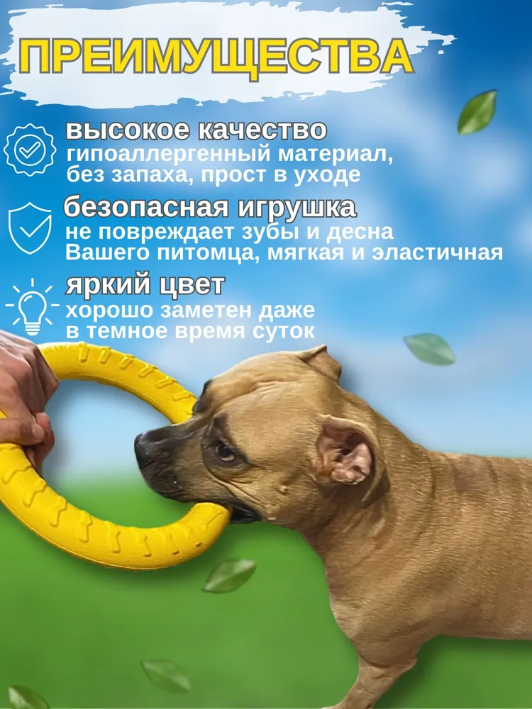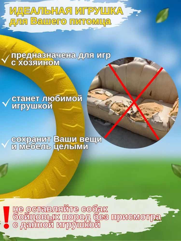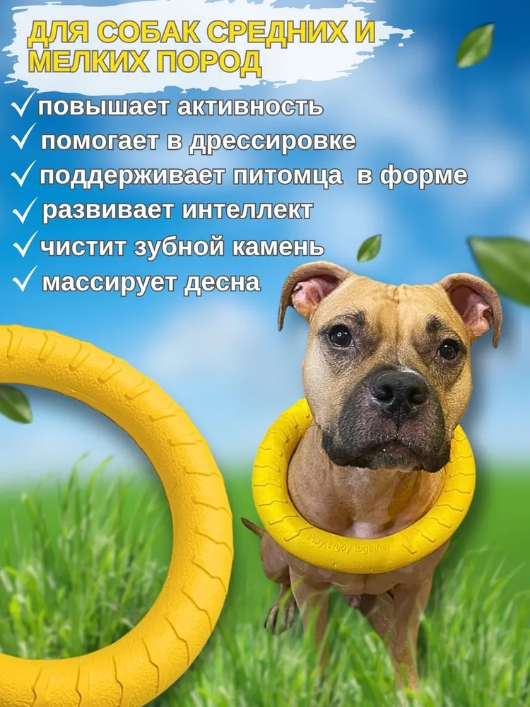 Пуллер для собак мелких и щенков весом до 3 и 5 кг желтого цвета. Изготовлен из EVA материала – экологически чистого, легкого,(не тонет) прочного и безопасного для вашего питомца. Не имеет запаха и вкуса. Размер кольца: диаметр 19 см, толщина 3 см. Лучшая универсальная игрушка для собак. Для долгой жизни игрушки не оставляйте ее на длительный срок один на один с острыми зубами вашего хвостика. Подходит для игр на суше в воде, на улице и дома. Что позволяет проводить время весело и увлекаться с питомцем в любых условиях. Данная игрушка предназначена для перетягивание или же для кидание как фрисби, которую вы тоже можете купить в нашем магазине