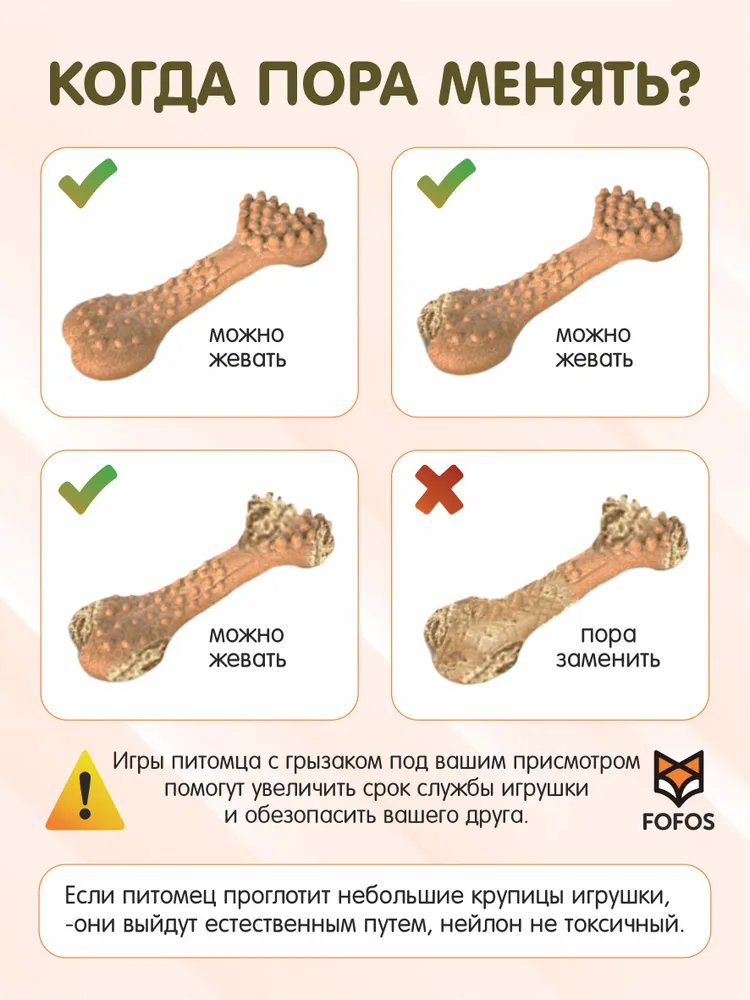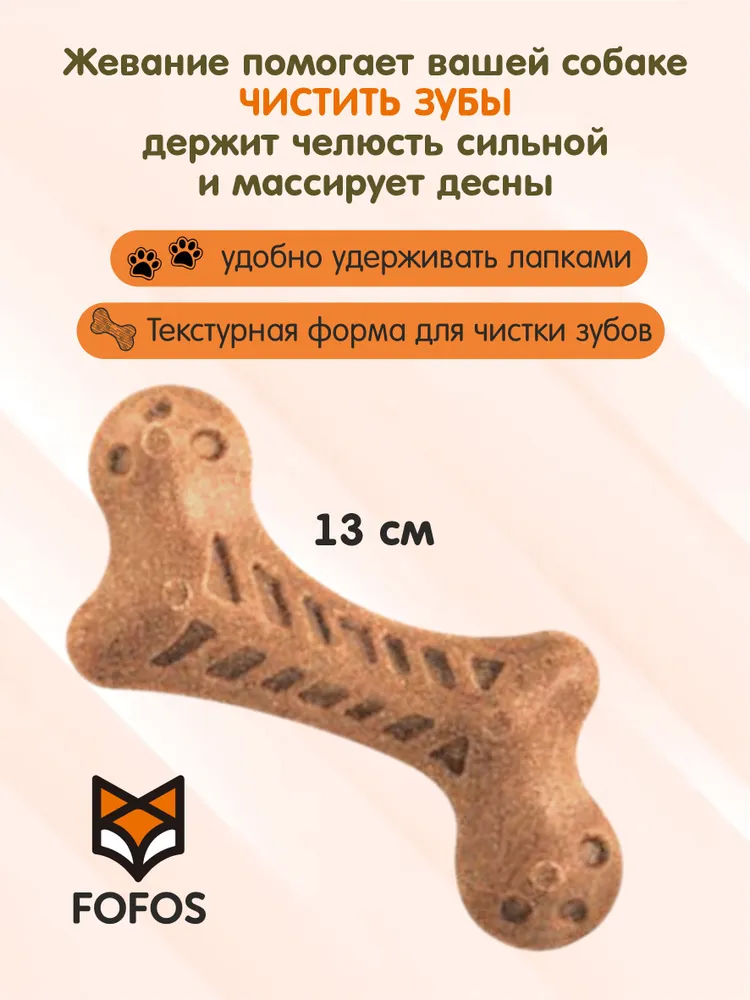 Деревянная косточка для собаки - это игрушка, разработанная специально для удовлетворения инстинктов жевания у собак. Она изготовлена из деревянного опила, который скреплен безопасным полимером. Его прессуют, придавая любую желаемую форму. Только такая игрушка для грызения абсолютно безопасна - даже если пёс проглотит кусочек, он легко выйдет естественным путём. Игрушка для чистки зубов помогает собаке снизить стресс и болезненность зубного нароста, а также укрепить челюсти. \n\nКусалка для собак очень прочная и долговечная, что делает ее отличным выбором для активных собак всех пород и размеров. Специальная текстура поверхности и форма игрушки антистресс стимулирует чистку зубов и массаж десен, улучшая здоровье полости рта у питомца.\n\nИгра с грызаком помогает собаке развивать зубастую силу и улучшает координацию движений. Кроме того, это отличный способ занимать питомца и предотвращать разрушение мебели или других предметов в доме. \n\nДеревянная кость для жевания - аксессуар, к которому можно начинать приучать питомца уже в раннем возрасте. Данная игрушка для щенков предлагается в различных формах и размерах, чтобы удовлетворить потребности любой собаки. \n\nОбязательно следите за поведением вашей собаки и состоянием грызака, чтобы вовремя заменить его в случае повреждений. Эта игрушка для собак мелких, средних и крупных пород приносит множество пользы для здоровья вашего питомца и обязательно станет любимым предметом для игр и развлечений. Обращаем внимание: для безопасности питомца, любую новую игрушку нужно давать под присмотром!
