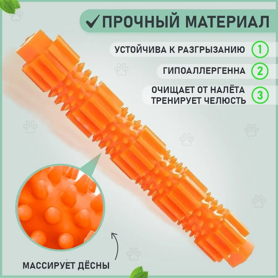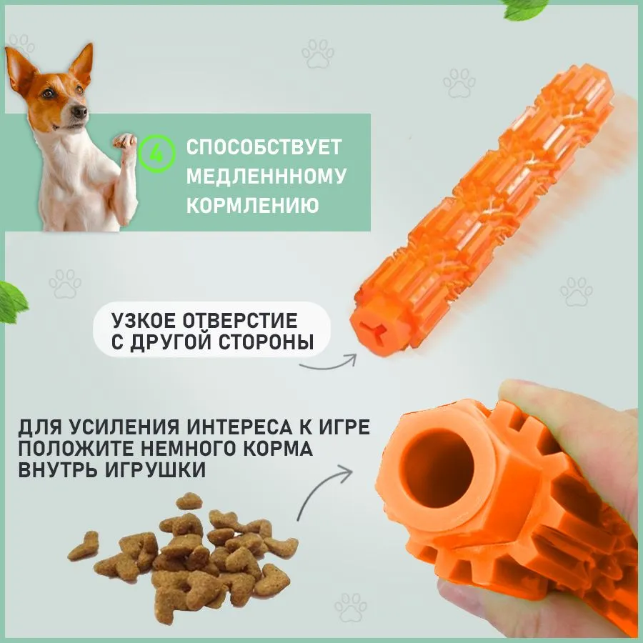 В поисках прочной игрушки для вашей собаки?Мы, владельцы собак, знаем, что зубы наших питомцев нуждаются в регулярной чистке и тренировке, и именно для этих целей существует практичная и эффективная игрушка-грызак для зубов.Наш грызунок для собак выполнен из качественного материала, который безопасен для здоровья питомца. Уникальный дизайн и высокое качество материала делают эту игрушку долговечной и надежной.Данная игрушка сможет занять собаку на длительное время, для этого нужно просто положить несколько кусочков корма внутрь. Такой метод так же подойдет тем владельцам, чьи собаки очень спешат при поедании корма.Ещё один вид игры - аппортировка. А благодаря достаточной длине игрушки (23 см) Вы сможете играть в перетягивания со своей собакой, что значительно улучшит контакт между хозяином и питомцем.
