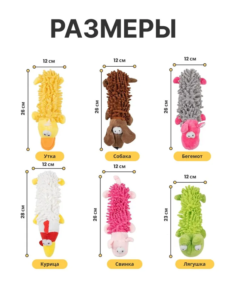 Набор игрушек для собак — это отличный способ развлечь вашего питомца и поддерживать его активность. Набор из 6 игрушек предназначен для собак мелких пород и щенков. Благодаря отсутствию наполнения в большей части игрушки, она прослужит дольше. Разнообразие форм и текстур делает её привлекательной для вашего четвероногого друга. В комплекте представлены игрушки с пищалкой, которые добавляют веселья в каждую игру, привлекая внимание собаки и стимулируя её активность. Набор мягких игрушек для собак станет отличным спутником в играх на свежем воздухе или дома. Выбирайте мягкие игрушки для собак, чтобы обеспечить своему любимцу радость и удовольствие. Эти игрушки для животных идеально подходят для активных игр и помогают укрепить связь между вами и вашим питомцем.