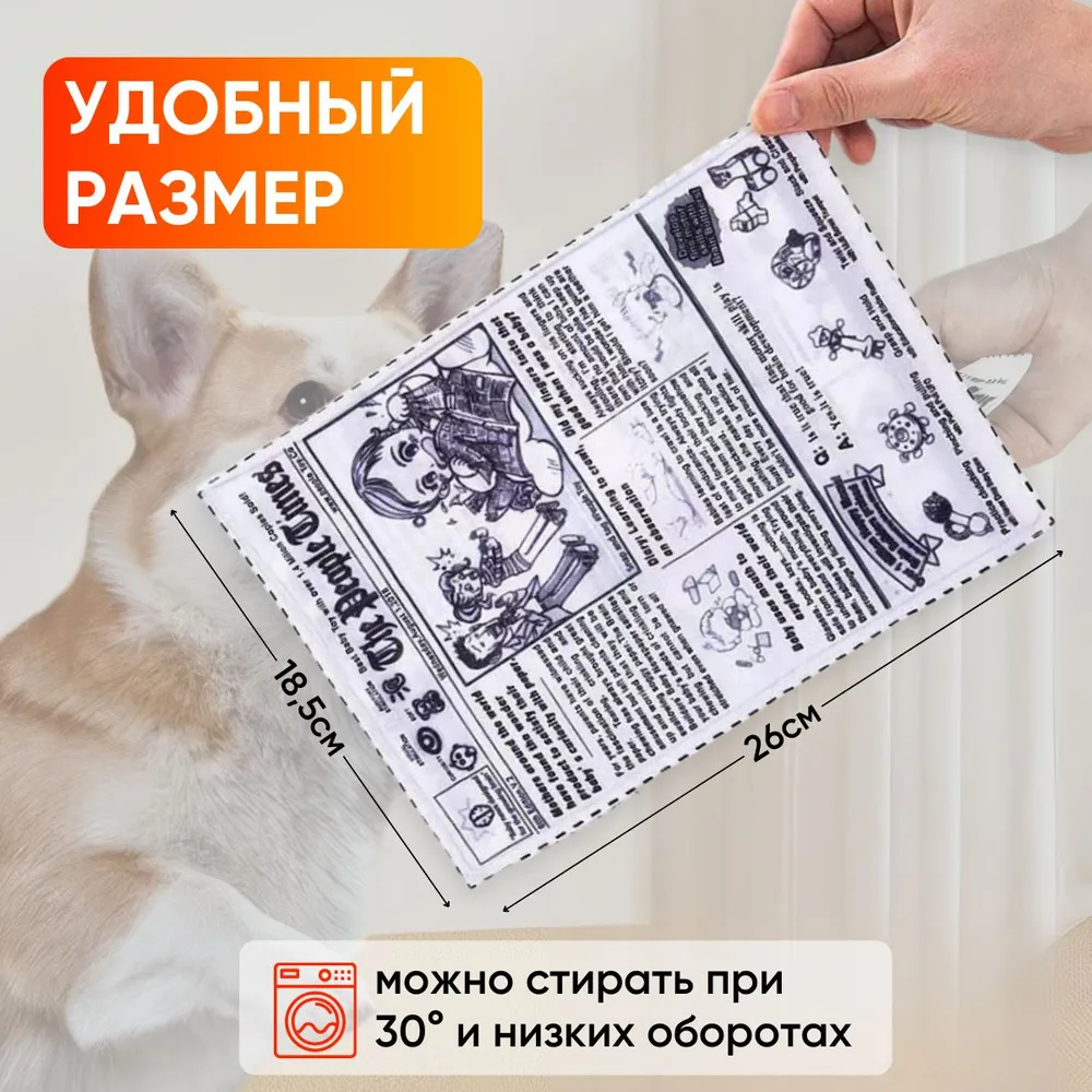 Шуршащая игрушка для собак «Газета-шуршалка»: идеальное развлечение для вашего питомца!Ищете способ порадовать своего четвероногого друга? Представляем вам шуршащую игрушку для собак «Газета-шуршалка» — идеальный выбор для мелких пород. Эта интерактивная и интеллектуальная игрушка не только обеспечит вашему питомцу увлекательное времяпрепровождение, но и поможет ему развивать свои навыки.Почему стоит выбрать «Газету-шуршалку»?Почему стоит выбрать «Газету-шуршалку»?Интерактивность: Игрушка изготовлена из мягкой и приятной на ощупь ткани, которая шуршит при каждом прикосновении. Это привлечет внимание вашего щенка и побудит его к активным играм.Интеллектуальное развитие: Играя с «Газетой-шуршалкой», ваша собака будет развивать свою сообразительность и ловкость. Это особенно полезно для молодых и активных питомцев.Универсальность: Подходит для собак разных размеров и пород. «Газета-шуршалка» станет отличным выбором как для маленьких, так и для средних пород.Безопасность