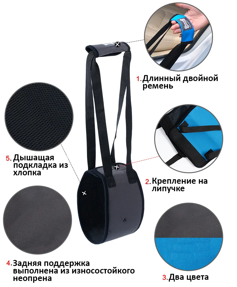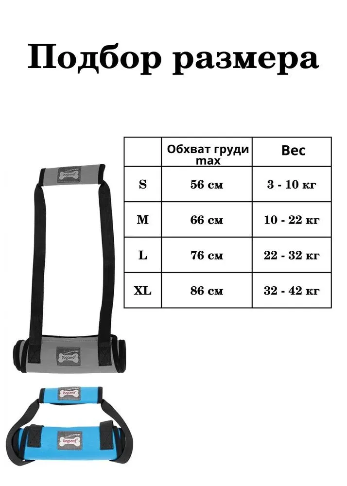 Больше подходит стройным собакам. Переднюю часть после реабилитации можно использовать как шлейку. Для выбора верного размера необходимо измерить грудь и живот.Полная поддержка с плечевой ручкой