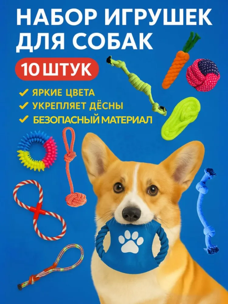 Игрушки для собак и щенков, набор, 10 штук