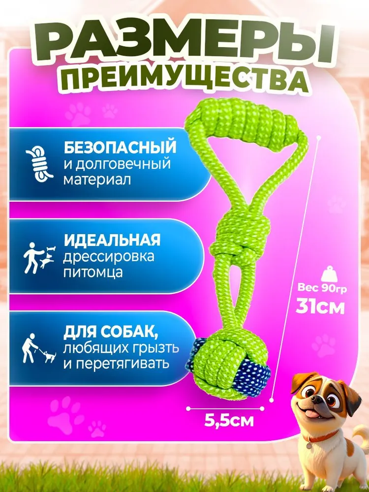 Верёвочная игрушка - отличный подарок любой собаке, ведь такую игрушку удобно грызть, распутывать, перетягивать! Собаки обожают играть с такими игрушками
