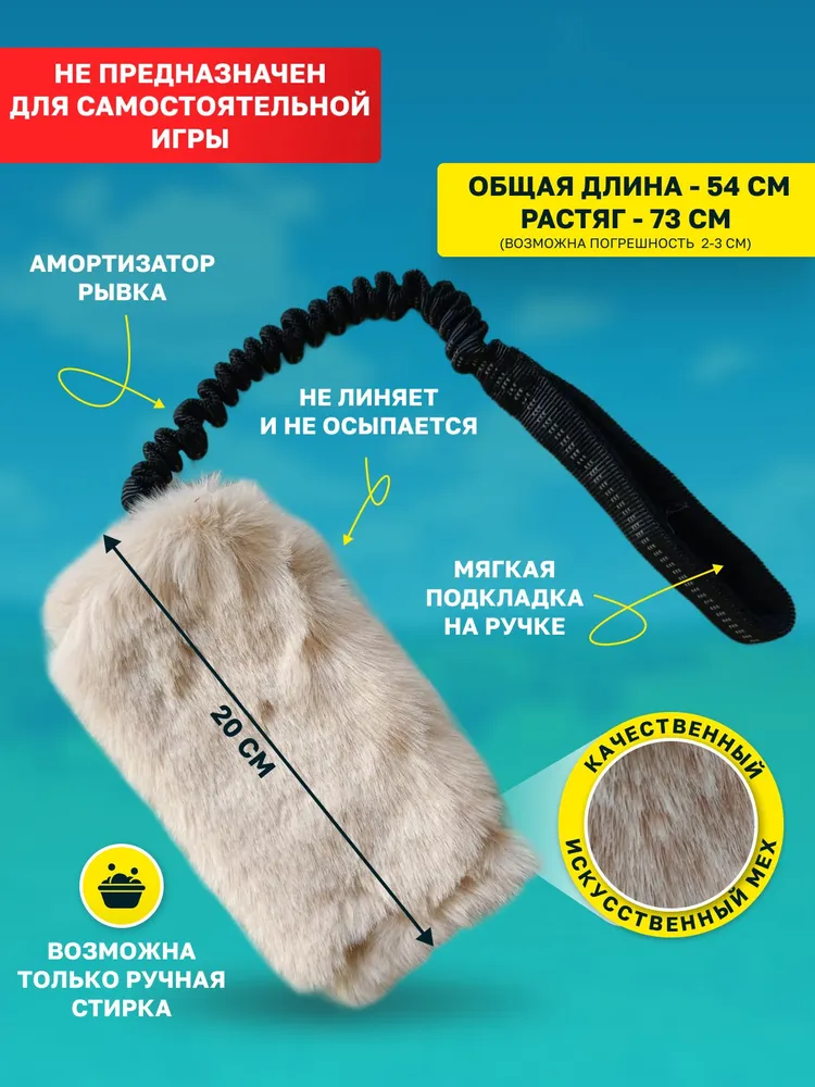 Ухват для собак — веселая игра и комфорт для вас!Представляем уникальную игрушку для вашего питомца — меховой ухват с амортизатором. Это не просто развлечение для собаки, но и удобство для вас!🐾 Почему стоит выбрать этот ухват?Амортизатор: Специальная система смягчает нагрузку на зубы и челюсти собаки, делая игру безопасной и комфортной.Мягкая ручка: Удобство для хозяина — вы сможете играть с питомцем долго, не уставая и не напрягая руку.Прочный материал: Игрушка выполнена из качественного меха, который выдерживает активные игры и сохраняет привлекательный вид долгое время.Развивает навыки: Игра с ухватом помогает развивать ловкость, силу челюстей и координацию движений у вашей собаки.💡 Идеально подходит для:Активных игр на свежем воздухе.Тренировок и дрессировки.Совместных занятий с хозяином.Позвольте вашему любимцу наслаждаться игрой, а себе — удобством и удовольствием от общения с ним!Ваш питомец заслуживает лучшего — подарите ему радость с нашим ухватом!