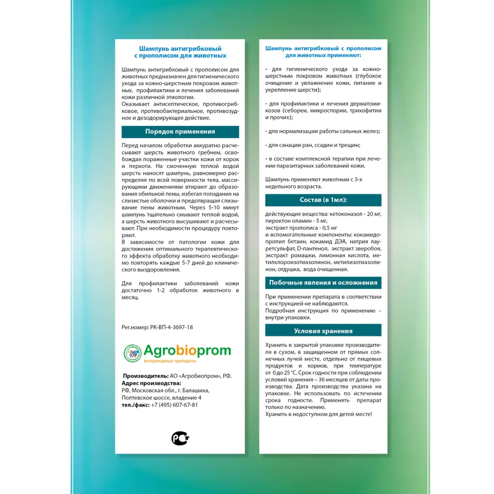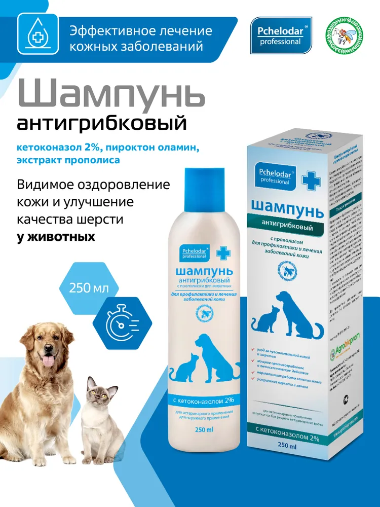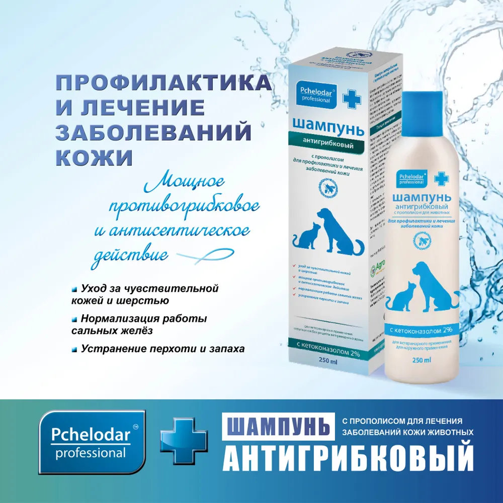 Шампунь Пчелодар для животных с прополисом - это натуральное средство, которое обеспечивает полноценный уход за шерстью вашего питомца. Специально разработанная формула с антигрибковым действием помогает бороться с различными кожными проблемами, такими как зуд, покраснения и перхоть.Прополис, входящий в состав шампуня, обладает противовоспалительными и антисептическими свойствами, способствует заживлению ранок и ускоряет процесс регенерации кожи. Благодаря естественным компонентам, шампунь не только бережно очищает шерсть, но и укрепляет ее, делая мягкой и блестящей.Пчелодар Шампунь рекомендуется использовать для всех пород и возрастов животных. Его удобно наносить на мокрую шерсть, массируя в течение нескольких минут, затем тщательно смывать водой. После применения шампуня ваш питомец будет выглядеть ухоженным и здоровым.Не забывайте, что забота о здоровье вашего питомца начинается с правильного ухода за его шерстью. Попробуйте шампунь Пчелодар с прополисом и убедитесь в его эффективности сами! Ваш любимец заслуживает только лучшего!Гигиенический лосьон для ухода за кожей собак и кошек