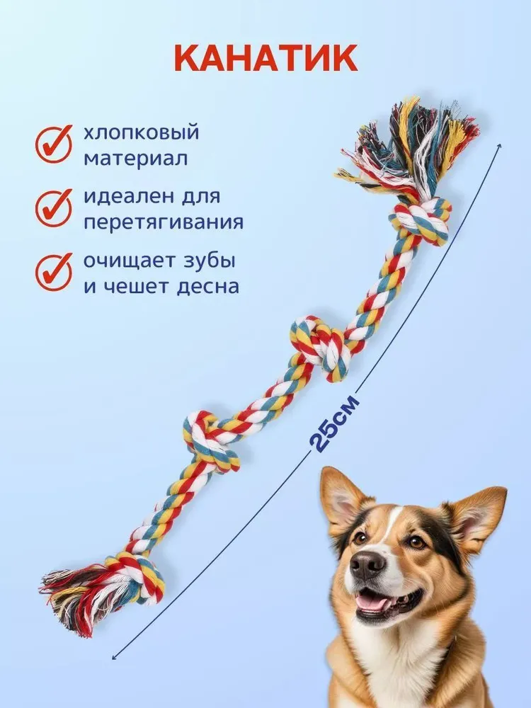 Игрушки для собак из натурального каната - отличный выбор для вашего питомца. Канатные игрушки не только прочные и износоустойчивые, но и безопасные для зубов собаки. Они идеально подходят для жевания, игр и тренировок. Канатные игрушки в нашем наборе имеют различные формы и размеры – от шариков и петелек до петелей и палочек. Игра с канатной игрушкой не только развлекает собаку, но и помогает укрепить ее зубы и челюсти. Канаты массируют десны и удаляют зубной налет, что способствует улучшению здоровья полости рта у вашего питомца. игрушки для собак из натурального каната не содержат вредных красителей или химических добавок, что делает их безопасными для игры и жевания вашей любимицы. Помимо этого, канатные игрушки легко моются и долговечны.
