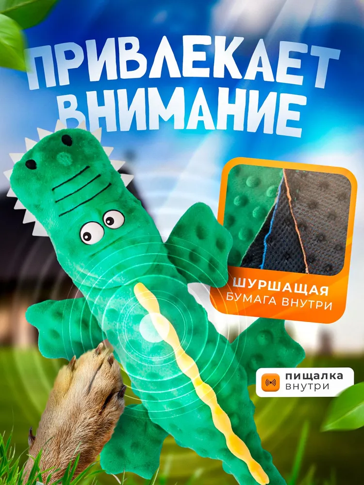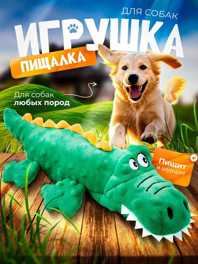 Благодаря компактным размерам и форме игрушка подойдет для собак разных размеров: от маленьких до средних и крупных пород. Она достаточно большая, чтобы быть заметной, и при этом удобная для переноски и игры.Игрушка для собак "Крокодил" — это не только забавный игрушка для собак, но и полезное средство для физической активности и поддержания здоровья зубов. Она идеально подходит для игр в помещении и на улице, а яркий дизайн и интересные звуковые эффекты делают каждую игру увлекательной.Посмотрите наши другие игрушки для собак:Игрушка для собак и щенков мелких, крупных пород - Утка.Игрушка для собак и щенков мелких, крупных пород - Осьминог.