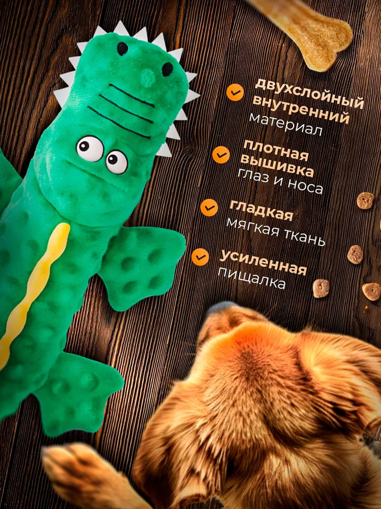 Крокодил выполнен из высококачественного материала, который выдерживает активные игры даже с самыми энергичными питомцами. Это позволяет долго наслаждаться игрой, не переживая о быстром износе игрушки.Идеально подходит для собак всех пород