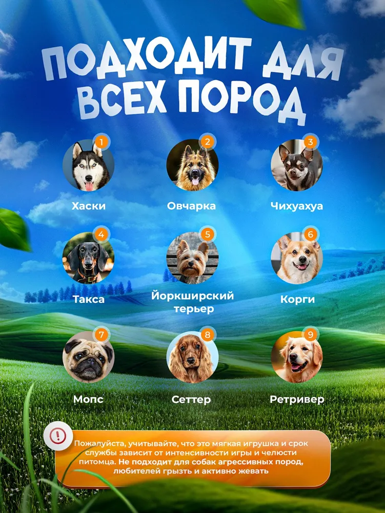 Игрушка изготовлена из безопасных и прочных материалов, которые способствуют поддержанию здоровья зубов и десен собаки. Жевание помогает удалить налет и укрепить зубы, предотвращая развитие зубных заболеваний.Безопасность и экологичность