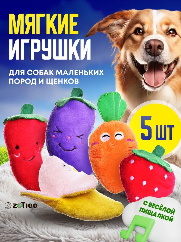 Мягкие игрушки для собак мелких пород и щенков, с пищалкой, набор 5 штук