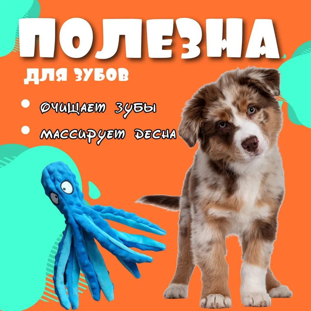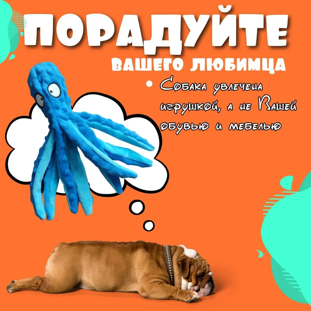 Осьминог игрушка для собак - идеальный спутник для ваших пушистых друзей! Забавный мягкий осьминог порадует своим внешним видом и удивит своими функциями, обеспечивая не только интересное времяпровождение, но и умственное развитие Вашего питомца. Такая игрушка для собак превратит время игры с питомцем в незабываемые моменты. Благодаря яркому дизайну и оригинальной форме, игрушка станет неотъемлемой частью Вашего дома, радуя и взрослых, и маленьких членов семьи.Длинные шуршащие щупальца осьминога будут привлекать внимание животного, стимулируя его натуральную любознательность и инстинкты. В голове игрушки находится пищалка, которая разнообразит звуки во время игры и усилит удовольствие питомца. Вышитые глаза делают игрушку безопасной, исключая возможность проглатывания мелких деталей. Игрушка для собак сделана из мягкой плюшевой ткани, которая приятна на ощупь и безопасна для Вашего любимца. Игрушка для собак Осьминог имеет универсальную длину 32 см, поэтому подойдет как игрушки для собак мелких пород, игрушки для собак средних пород и даже как игрушки для собак крупных пород.Внутри Осьминога нет набивки, что уменьшает риск разброса материала по дому при случайном повреждении игрушки. Уход за игрушкой также прост - она может быть постирана на деликатном режиме стирки, без использования агрессивных моющих средств. Игрушка для собак в виде осьминожка подходит для всех видов, пород и возрастов домашних питомцев: будь то собаки, кошки, шиншиллы, крысы, хорьки и даже еноты. Это отличная альтернатива традиционным игрушкам, таким как морковка, рыба, курица, свинья и утка.Вдобавок, Осьминог может быть использован для тренировок и дрессировки, например, при обучении команде апорт. Качественные материалы гарантируют долговечность и безопасность использования. К тому же игрушка Осьминог станет прекрасным подарком для ваших друзей и знакомых, у которых есть собаки или другие домашние питомцы. Удивительный осьминог с пищалкой и шуршащими щупальцами станет настоящей находкой для Вашего четвероногого друга, подарив ему множество часов радости и веселья. Не упустите возможность порадовать своего питомца этой замечательной игрушкой, и Вы оба останетесь довольны выбором!