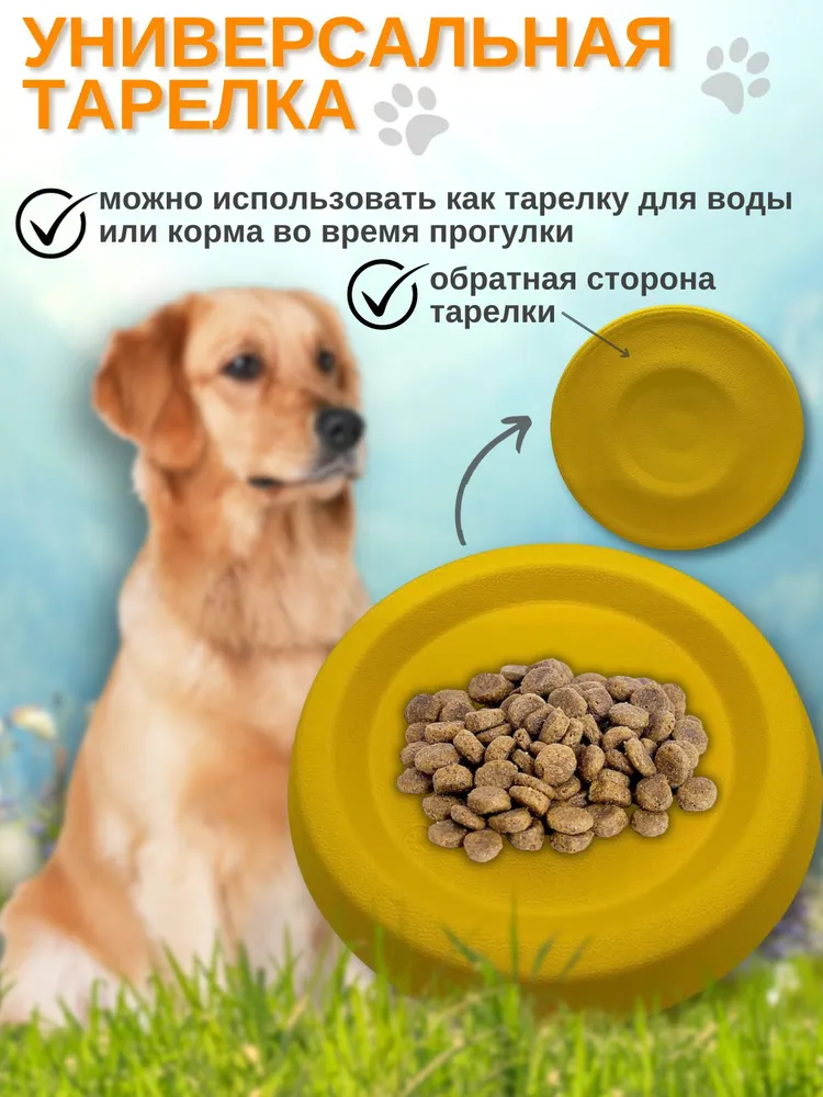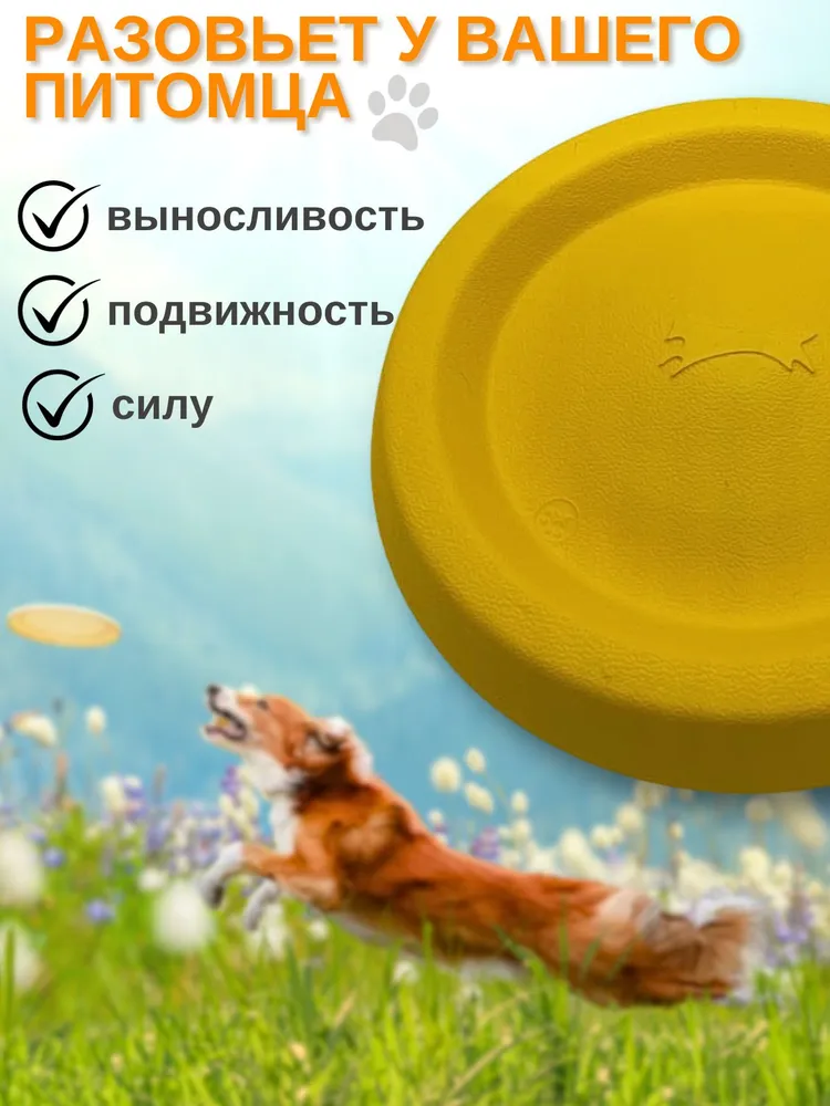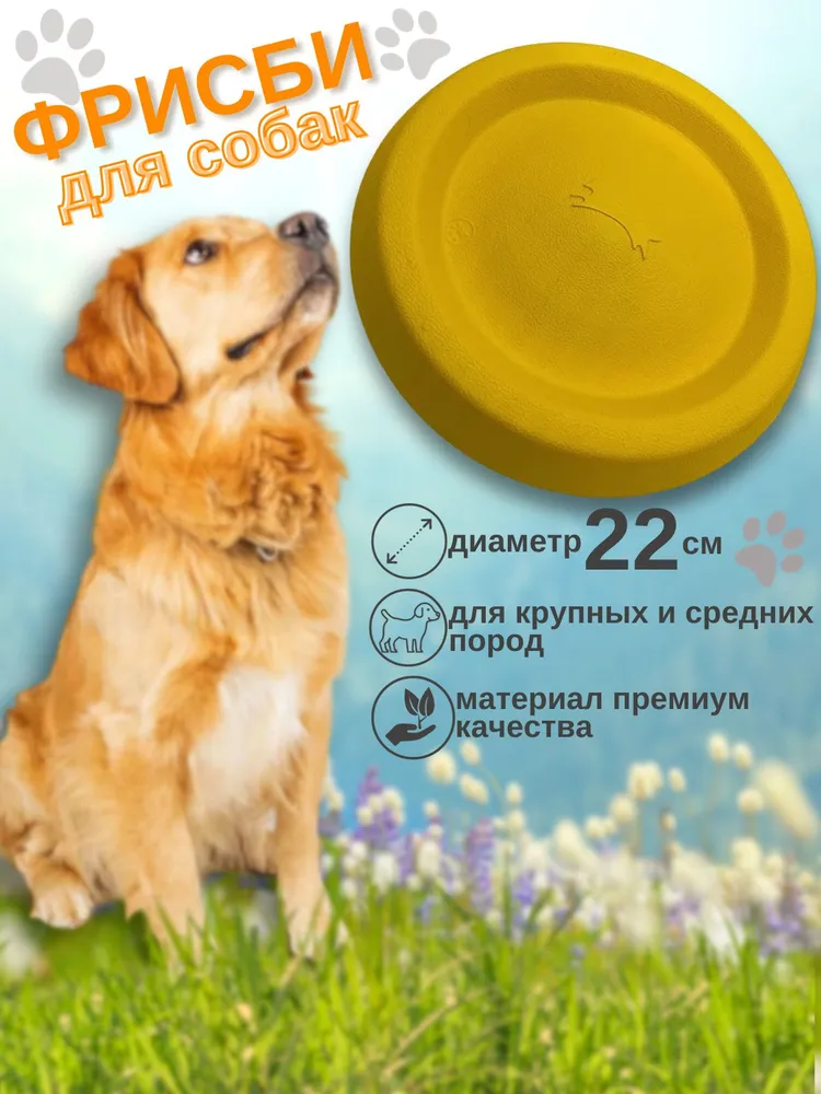 Фрисби для собак из EVA материала - лучшая универсальная игрушка для собак. Летающая тарелка подходит как для обычных игр с собакой, так и для дрессировки собаки. Фрисби обладает высоким бортиком, что позволяет использовать его как миску или поилку во время прогулок. Фрисби не тонет в воде, а не тонущая игрушка это очень важно для игр около водоемов. Подходит для крупных и средних собак. Диаметр 22 см