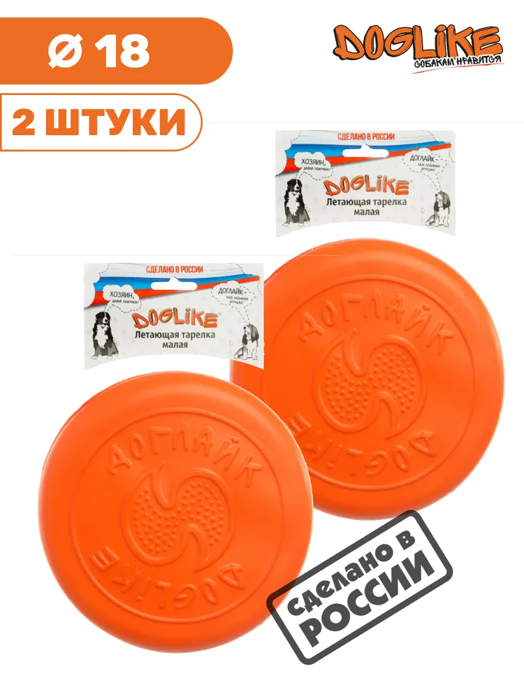 Набор из двух Малых летающих тарелок Doglike, диам. 18 см.Летающая тарелка - отличная игрушка для всех пород собак. Тарелка идеально подходит для отработки прыжков и скорости при любительских тренировках. Подвижные и веселые занятия можно проводить как на природе, так и в помещении. Не тонет в воде! Сбалансированная плотность материала позволяет кусать игрушки без вреда для зубов и десен собаки.Хорошо заметна в траве или на снегу благодаря яркому цвету игрушки.Тарелка не тонет в воде и имеет малый вес· Разработана для отработки прыжков и бега