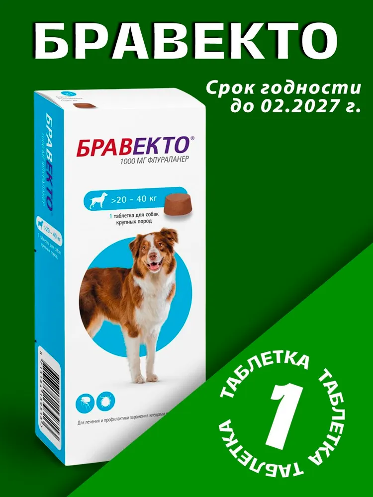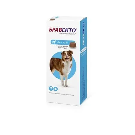 Бравекто назначают собакам для лечения и профилактики афаниптероза, в комплексной терапии вызываемого блохами аллергического дерматита, акарозов, вызываемых иксодовыми клещами, для лечения демодекоза, саркоптоза и отодектоза, а также для снижения риска бабезиоза.Состав:Содержит в качестве действующего вещества флураланер, в 1 таблетке соответственно 1000 мг.Действие:Бравекто относится к инсектоакарицидным лекарственным препаратам системного действия. Входящий в состав препарата флураланер — инсектоакарицид группы изоксазолина, активен в отношении блох (Ctenocephalides felis и Ctenocephalides canis) и иксодовых клещей (имаго и личинки Ixodes ricinus, Ixodes hexagonus, Ixodes scapularis, Ixodes holocyclus, Dermacentor reticulatus, Dermacentor variabilis и Rhipicephalus sanguineus), паразитирующих на собаках.После перорального введения препарата флураланер легко всасывается в желудочно-кишечном тракте и достигает системного кровотока, максимальная концентрация в плазме крови достигается в течение 1 дня, биодоступность составляет 20-27%, прием корма ускоряет всасывание.Выводится флураланермедленно, преимущественно в неизмененной форме с фекалиями (~90% дозы) и частично с мочой, период полувыведения — 12 суток.Препарат начинает действовать через 4 часа после применения и вызывает гибель блох через 8 часов после прикрепления к организму хозяина, клещей — через 12 часов, предотвращая повторную инфестацию собак эктопаразитами.Гибель блох происходит до откладки яиц, что профилактирует контаминацию помещений яйцами и личинками.Применение:Бравекто применяют собакам индивидуально перорально во время или незадолго до/после кормления в терапевтической дозе 25-56 мг флураланера на 1 кг массы животного. Бравекто обладает привлекательным ароматом и вкусом и, как правило, охотно поедается собаками; в противном случае, препарат вводят принудительно непосредственно в пасть или скармливают с кормом.Разламывание таблеток не допускается.Следует убедиться в том, что собака полностью проглотила необходимую дозу препарата.При применении препарата собакам массой более 56 кг используют комбинацию таблеток из расчета 25-56 мг флураланера на 1 кг массы животного.Допускается применение препарата в период щенности и лактации.Повторные обработки при необходимости проводят через 12 недель.Следует избегать нарушений схемы применения препарата, так как это может привести к снижению его эффективности. В случае пропуска очередной обработки применение препарата возобновляют в той же дозе по той же схеме.Симптомы передозировки не выявлены.Побочные действия:Побочные явления и осложнения при применении препарата в соответствии с инструкцией, как правило, не наблюдаются. В редких случаях возможна рвота, диарея, снижение аппетита и слюнотечение. В случае если рвота у собаки произошла в течение первых двух часов после приема Бравекто, рекомендуется удостовериться, что рвота прекратилась и дать препарат повторно в той же дозе.Противопоказания; Противопоказанием к применению является индивидуальная непереносимость компонентов препарата.Препарат не следует применять щенкам моложе 8-недельного возраста и/или собакам массой менее 2 кг.Бравекто не предназначен для применения продуктивным животным.Особые указания*Особенностей действия при первом применении препарата и при его отмене не выявлено. При одновременном применении Браве