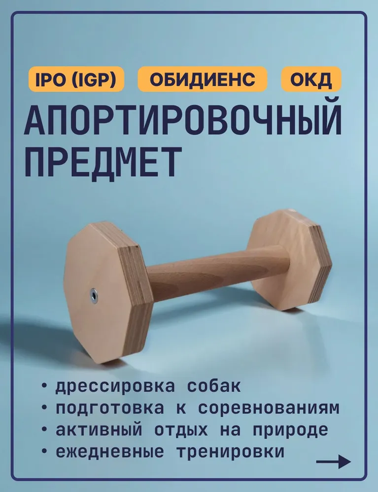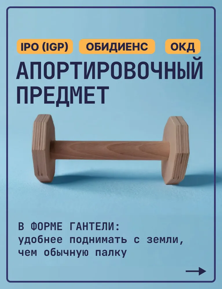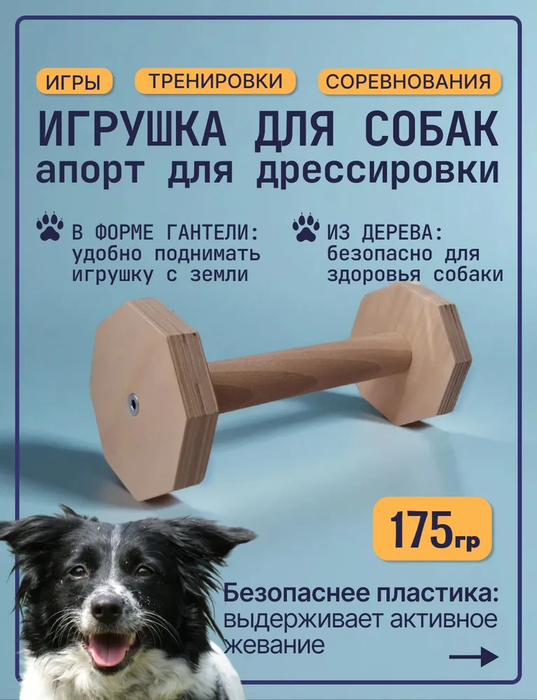 Деревянная гантель для собак 175 гр – это профессиональная игрушка для апортировки, дрессировки и подготовки к соревнованиям.🐕 Для чего нужна?✔️ Обучение команде "апорт"✔️ Тренировка перед соревнованиями по аджилити и обидиенс✔️ Развитие хватки и челюстных мышц✔️ Альтернатива пластиковым и резиновым игрушкам🌳 Особенности:- Материал: натуральное дерево (экологично и безопасно)- Вес: 175 гр – подходит для средних и крупных пород (лабрадор, овчарка, ретривер)- Форма: удобная для захвата пастью- Покрытие: без лака и химии🏆 Идеально для:- Кинологов и спортсменов-собаководов- Владельцев активных собак- Подготовки к нормативам IPO, FH, ОКД📦 Комплектация: 1 деревянная гантель.Материал: перекладина - бук, боковины - берёзовая фанера