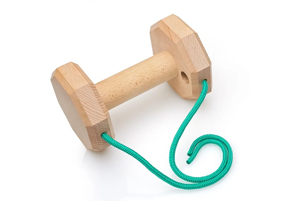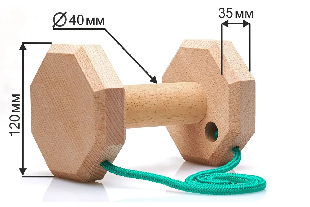 Апорт из бука для тренировки "WoodenGifts" в виде гантели выполнен из массива дерева. Оригинальную игрушку для собак "Апорт" удобно поднимать с поверхности по сравнению с классической палкой. Безопасен для зубов и десен собаки. Материал прочный, экологически чистый.\nДополнительная шнуровка для тренировки и игры.\nВес гантели 650 гр. в соответствии с международными стандартами.