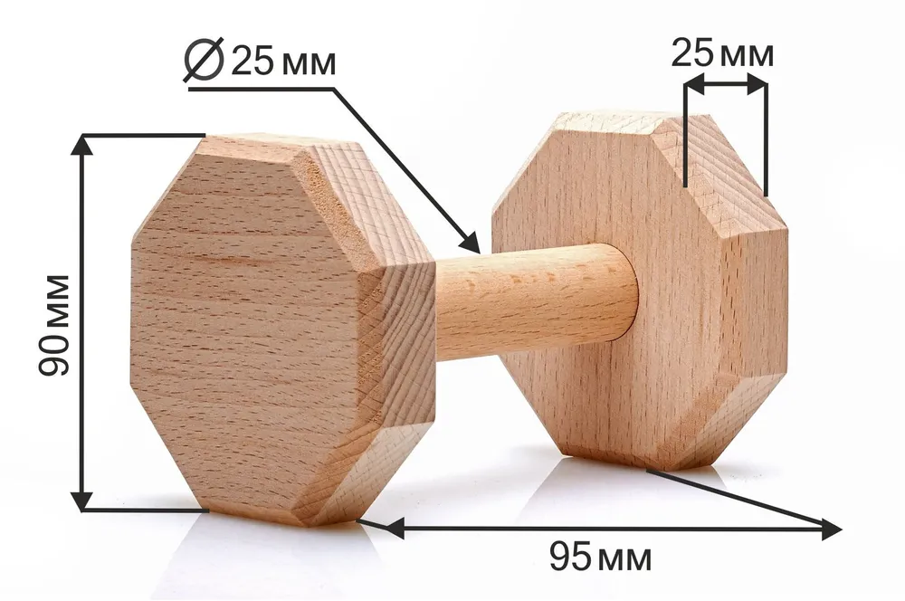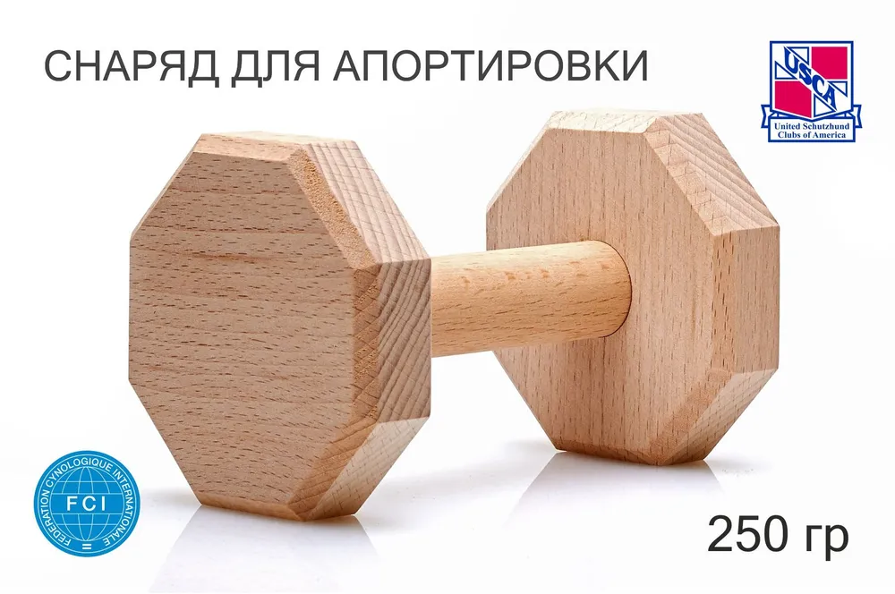 Апорт из бука для тренировки "WoodenGifts" в виде гантели выполнен из массива дерева. Оригинальную игрушку для собак "Апорт" удобно поднимать с поверхности по сравнению с классической палкой. Безопасен для зубов и десен собаки. Материал прочный, экологически чистый.\nВес гантели 250 гр.