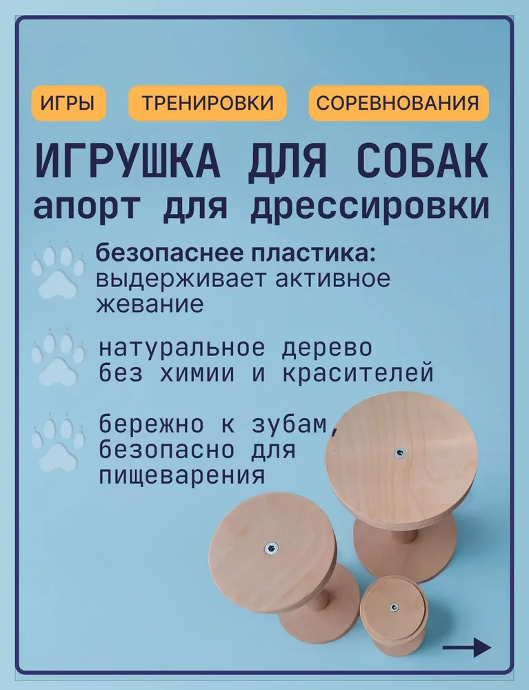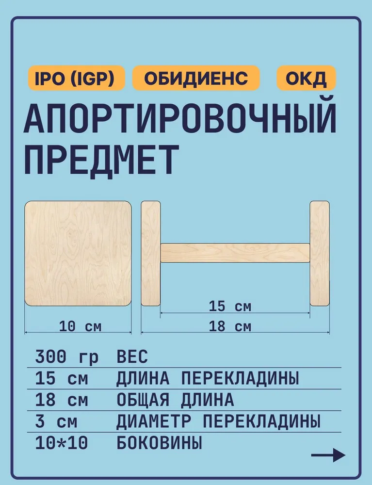 ИГРУШКА ДЛЯ АПОРТИРОВКИДеревянная гантель для собак 300 гр – это профессиональная игрушка для апортировки, дрессировки и подготовки к соревнованиям.🐕 Для чего нужна?✔️ Обучение команде "апорт"✔️ Тренировка перед соревнованиями по аджилити и обидиенс✔️ Развитие хватки и челюстных мышц✔️ Альтернатива пластиковым и резиновым игрушкам🌳 Особенности:- Материал: натуральное дерево (экологично и безопасно)- Вес: 300 гр – подходит для средних и крупных пород (лабрадор, овчарка, ретривер)- Форма: удобная для захвата пастью- Покрытие: без лака и химии🏆 Идеально для:- Кинологов и спортсменов-собаководов- Владельцев активных собак- Подготовки к нормативам IPO, FH, ОКДМатериал: берёза, боковины - берёзовая фанера