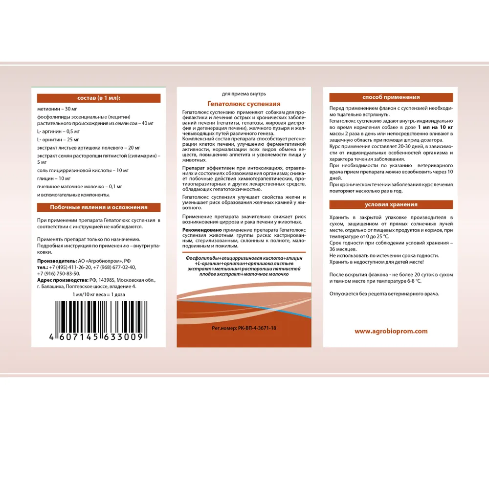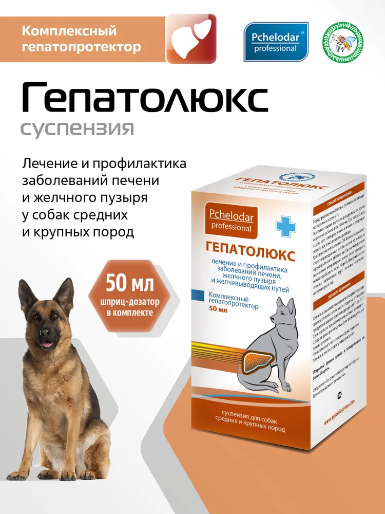 Для лечения заболеваний печени и желчного пузыря у собак "Гепатолюкс"Гепатолюкс - это эффективное средство для лечения заболеваний печени у собак средних и крупных пород. Суспензия объемом 50 мл обладает противовоспалительным и антибактериальным действием, помогая быстро и эффективно восстановить функции печени вашего питомца.Пчелодар - это надежный производитель ветеринарных препаратов, обладающий многолетним опытом и высоким качеством продукции. Гепатолюкс разработан специально для лечения печени у собак, обеспечивая им полноценное и здоровое функционирование этого важного органа.С помощью Гепатолюкса вы сможете обеспечить вашего питомца надежной защитой от различных заболеваний печени, таких как гепатит, жировая дистрофия, холангит и другие. Средство также помогает улучшить пищеварение, облегчает работу желчного пузыря и поджелудочной железы.Суспензия легко дозируется и принимается животными без проблем. Препарат имеет приятный вкус, что делает его удобным в использовании. Гепатолюкс не вызывает побочных эффектов и хорошо переносится животными.Не оставляйте заболевание печени без внимания - при первых признаках обращайтесь к ветеринару. Гепатолюкс от Пчелодар поможет вашему питомцу быстро вернуться к здоровой и активной жизни. Ухаживайте за своими питомцами с заботой и любовью!Для лечения заболеваний печени, желчного пузыря у собак**Гептролюкс — забота о здоровье вашей любимой собаки**Заболевания печени и желчного пузыря могут серьезно повлиять на здоровье вашего питомца. Гептролюкс — это эффективное средство, которое помогает в лечении этих заболеваний, обеспечивая вашим любимцам необходимую поддержку. Этот препарат подходит как для собак, так и для кошек, что делает его универсальным решением для владельцев домашних животных.При выборе корма или наполнителя для туалета важно помнить о здоровье вашего питомца. Гептролюкс поможет предотвратить возможные проблемы, связанные с печенью, и поддержит общее состояние вашего животного. Препарат можно использовать в сочетании с различными зоотоварами, такими как ошейники, игрушки и даже таблетки от блох и клещей. Забота о здоровье вашего питомца начинается с правильного выбора средств для ухода.Проблемы с печенью могут быть вызваны неправильным питанием или наличием паразитов, таких как глисты. Гептролюкс помогает в выведении токсинов и улучшает обмен веществ, что особенно важно для активных животных, которые часто гуляют на улице или контактируют с другими питомцами. Использование таких препаратов, как Бинакар и Фенпраз, в сочетании с Гептролюкс, обеспечит комплексный подход к профилактике и лечению заболеваний.Заботьтесь о здоровье вашего котика или щенка, используя проверенные средства. Гептролюкс легко включается в ежедневный уход за животными. Также не забывайте о важности витаминов и пробиотиков для поддержания иммунной системы вашего питомца.Гептролюкс — это не просто лекарство, это ваша возможность подарить любимому питомцу здоровье и долгую жизнь.Для лечения заболеваний печени и желчного пузыря у собак