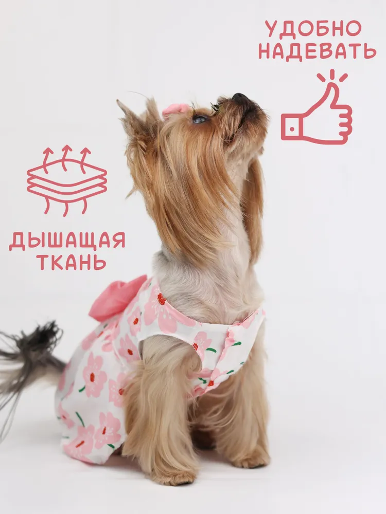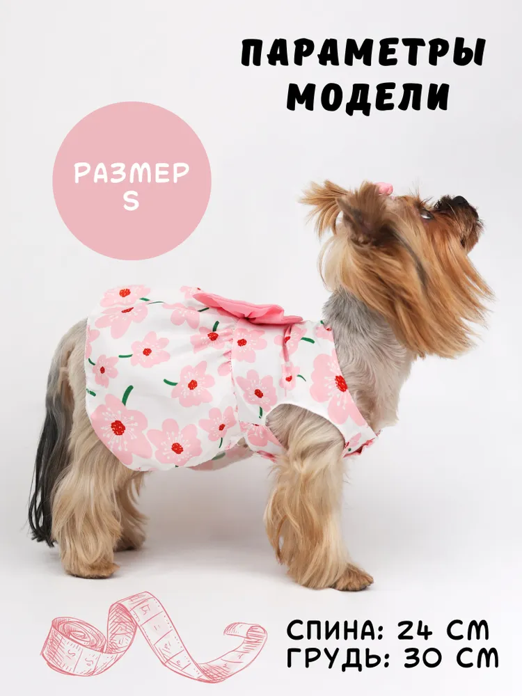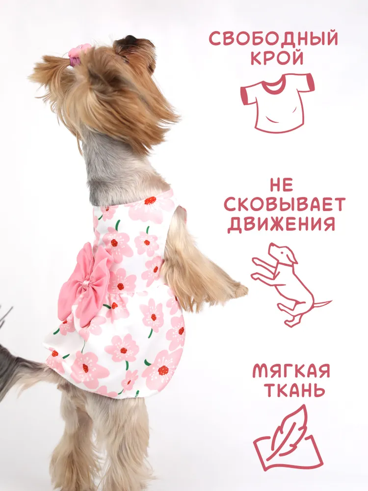 Это очаровательное платье станет настоящим украшением для вашего любимца! Сшитое из мягкой и приятной к телу вискозы, оно обеспечит комфорт и свободу движений. Яркий цветочный принт и милые банты добавят вашему питомцу очарования и стиля. Платье застегивается на удобные кнопки, что упрощает одевание. Идеально подходит для собак и кошек, оно превратит вашего любимца в настоящую звезду!