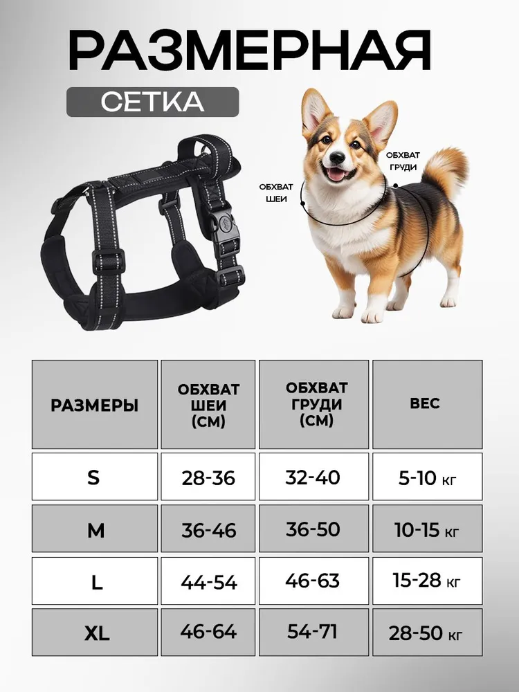 Шлейка анатомическая для собак средних и крупных пород