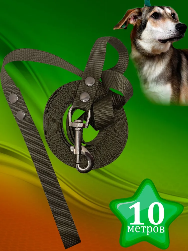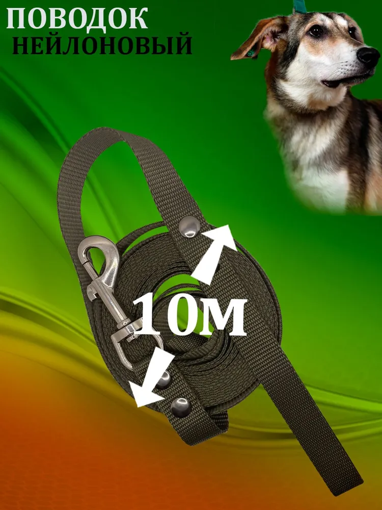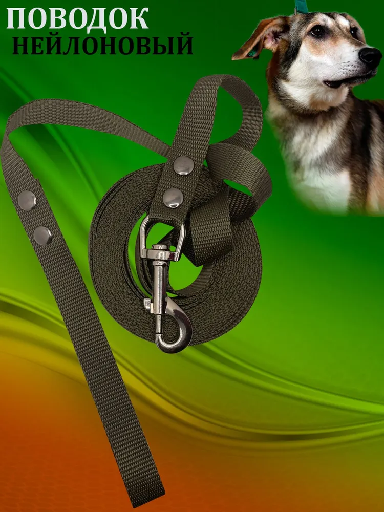 Поводок нейлоновый зеленый для собак 10 метров *20мм