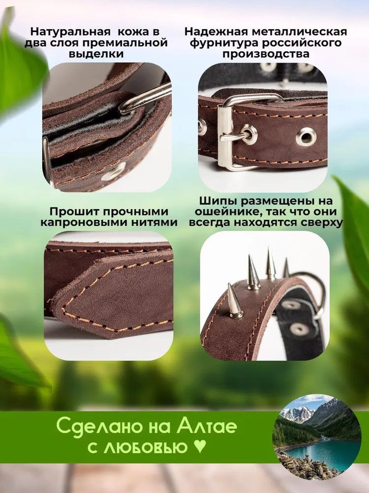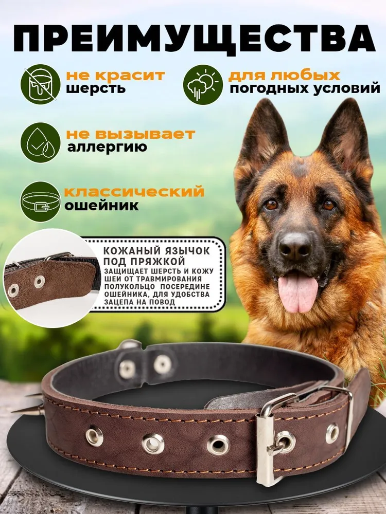 Классические стильные повседневные ошейники - это необходимая часть амуниции для спокойных и активных прогулок, дрессировки, участия в выставках, воспитания и коррекции поведения собак всех пород и размеров (мелких, средних и крупных), а так же щенков. Ошейники для собак выполнены из качественной гипоаллергенной натуральной кожи или прочного брезента, не красят шерсть. Они двойные или одинарные, в зависимости от модели. Мы используем надежную фурнитуру из нержавеющей стали, прочные капроновые нити и изготавливаем продукцию вручную. На данных моделях установлена классическая роликовая металлическая пряжка, а не фастекс. Анатомия ошейника продумана до мелочей и выполнена по собственному дизайну, есть язычок под пряжкой, который защищает шею питомца от дискомфорта и натирания, можно прикрепить адресник. Наш ошейник отлично дополнит набор имеющейся у вас амуниции - электронный, светящийся, строгий и с шипами, антилай, от блох и клещей, биотановый, с пультом, удавку, тактический. Многофункциональный ошейник подходит для любых погодных условий, обеспечит комфорт и безопасность в любой ситуации. Для увеличения срока службы, рекомендуется хорошо просушивать всю амуницию для собак после длительного использования в дождливую сырую погоду. Мы изготавливаем нашу продукцию на Алтае с большой любовью к домашним животным! Наши поводки и ошейники уже оценили владельцы немецких овчарок, ротвейлеров, лабрадоров, хаски, корги, биглей, шпицев, бульдогов, чихуахуа и других пород собак, а так же крупных котов и кошек. Надеемся, вы тоже останетесь довольны и ваш питомец скажет вам спасибо!