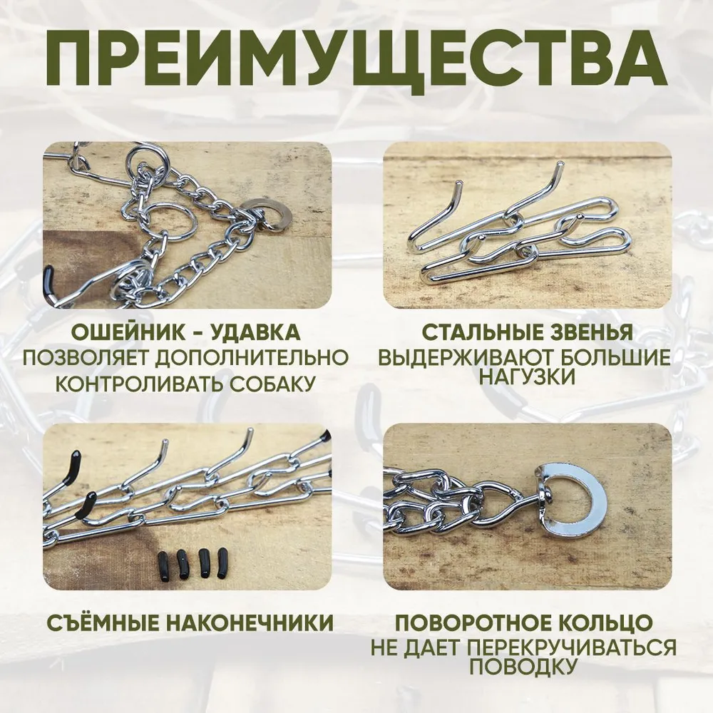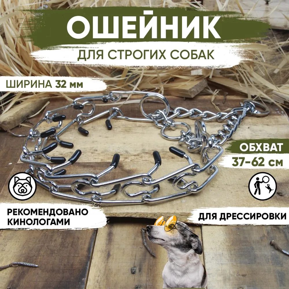 Профессиональный строгий ошейник с удавкой, разнонаправленные зубья. Предназначен для собак средних и крупных пород. Строгий ошейник для воспитания особо активных и сильных собак, а также сторожевых и бойцовских пород.При рывке собаки ошейник сокращается в диаметре, поднимаются специально отогнутые проволочные зубья, приносящие собаке неприятные ощущения. Питомец, каким бы активным он не был, быстро понимает, что дергать поводок нельзя. Так воспитывается дисциплина и подчинение хозяину.Можно снять несколько звеньев, уменьшив таким образом длину ошейника. Материал: сталь. Предназначен для дрессировки собак, так же идеально подойдет для повседневного использования.Стальной материал ошейника обеспечивает надежность и прочность даже при интенсивном использовании. Качественная конструкция и прочные заклепки гарантируют, что ошейник прослужит вам долгое время.Ширина 32мм, вес 330г, толщина 4мм, подойдет для собак с обхватом шеи 37-62 см.ВАЖНО! Обхват ошейника замерен в распущенном состоянии удавки. Удавка уменьшает обхват ошейника примерно на 20%.