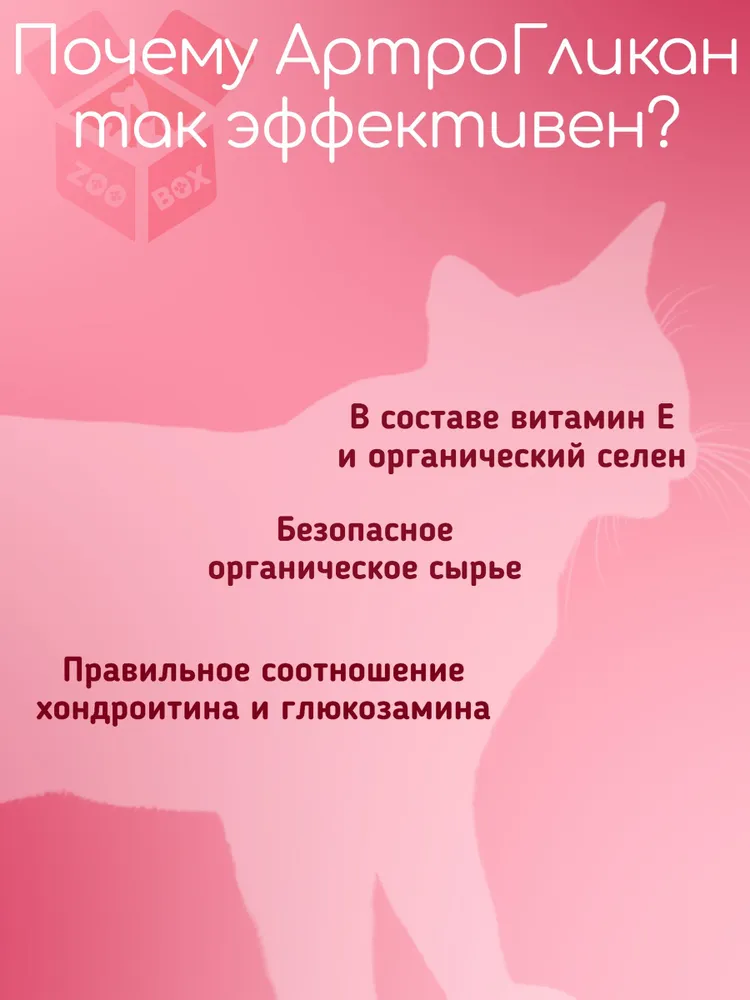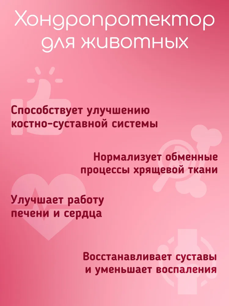 Артрогликан – надежный помощник для здоровья суставов и связок ваших питомцев. Препарат для профилактики болезней опорно-двигательного аппарата у собак, кошек и грызунов.Если у вас в доме живет верный пес, то Артрогликан для собак станет настоящим спасением. Он не только поможет снять неприятные ощущения, но и позаботится о профилактике заболеваний суставов. Особенно это важно для больших и активных собак, ведь хондропротектор для собак крупных пород – это залог их долгой и счастливой жизни.И, конечно, мы не забыли о пушистых мурлыках! Артрогликан для кошек – это деликатное решение для поддержания здоровья их гибких и грациозных движений. Ведь даже самые ловкие кошки нуждаются в защите своих суставов.Артрогликан – это больше, чем просто хондропротектор для суставов животных. Это комплексная поддержка, включающая в себя необходимые витамины для суставов и связок, чтобы ваш питомец всегда чувствовал себя отлично. Артрогликан - кормовая добавка - хондропротектор для животных, эффективная поддержка суставов и хрящей, улучшает состояние печени и сердца, восполняет дефицит витамина Е, кальция и селена.Для самых маленьких и растущих непосед Артрогликан станет отличным выбором, ведь это еще и витамины для щенков, которые помогут сформировать крепкие и здоровые суставы на всю жизнь, также он полезен для зубов и костей.Этот хондропротектор назначают собакам, кошкам при первичных артрозах; при дегенеративных заболеваниях суставов и позвоночника; остеохондрозе, остеоартрите, остеопорозе и дисплазии суставов; стимулирует продукцию суставной жидкости, улучшает подвижность суставов, также снижает боль.С Артрогликаном для животных вы дарите своему любимцу свободу движений и радость каждого дня!Позаботьтесь о здоровье суставов вашего питомца сегодня, чтобы завтра он мог бегать и играть без ограничений!