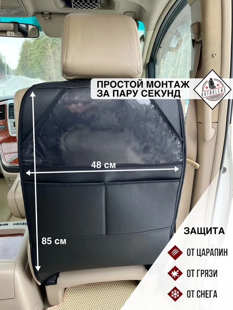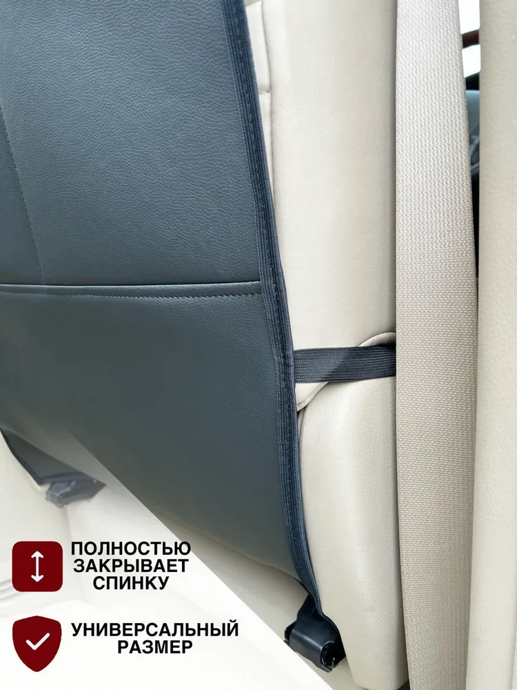 Накидка на сиденье автомобиля от детей из эко-кожи. Если в машине для безопасности используют автолюльку, детское автокресло или бустер, дети часто пачкают спинку водительского и пассажирского переднего сидения грязными ботинками. Риск ее загрязнения, появления царапин есть также при перевозке домашних животных (собак) на заднем авто - кресле. Для обеспечения защиты сидения от детей, подойдет защитная накидка на спинку автомобильного сиденья, стильный органайзер - подкладка из искусственной кожи с карманами под телефон и мелочи. Защитные кожаные авточехлы станут лучшим дополнением комплекта аксессуаров для машины. Накладки защитят покрытие от детских ног, загрязнений. Мягкая подложка - незапинайка существенно упростит уход за салоном авто, будет незаменима во время путешествий, повседневных поездок с малышами. Автотовары ,незапинайка на сиденье водителя и пассажира с удобным креплением, кармашками изготовлены из долговечных материалов, защитят автосидение и предотвратят его загрязнение в результате контакта с детскими ножками. Толщина эко-кожи 1мм, поролон 3мм , двухслойный материал ,прошито армированной нитью .