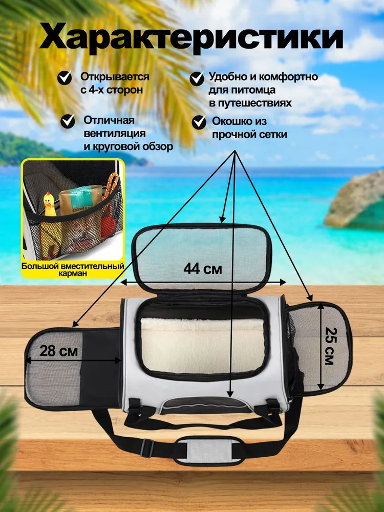 Переноска для кошек и собак – это идеальный аксессуар для комфортной перевозки ваших питомцев и мелких грызунов. Эта сумка обеспечивает надежную защиту и уют для ваших любимцев во время путешествий, походов к ветеринару или просто прогулок по городу. Разработанная с учетом потребностей животных, она сочетает в себе функциональность и стильный дизайн.Материалы, из которых изготовлена переноска, отличаются прочностью и долговечностью, что гарантирует долгий срок службы. Внутреннее пространство максимально удобно для питомцев: в сумке предусмотрены мягкие элементы, которые делают ее комфортной для сна или отдыха. Закрывающиеся вентиляционные окна обеспечивают хороший поток воздуха, что важно для создания оптимального микроклимата внутри.Переноска легка и компактна, что делает ее удобной для транспортировки. Благодаря современным застежкам сумку легко открывать и закрывать, а также можно быстро и просто зафиксировать переноску в автомобиле. Ручки имеют удобную форму, что обеспечивает комфорт при переноске. Многие модели также оснащены дополнительными карманами для хранения личных вещей вашего питомца, таких как лакомства или игрушки.Эта сумка будет отличным выбором для владельцев, которые заботятся о комфорте и безопасности своих любимцев. Сумка подходит как для путешествий, так и для повседневного использования.
