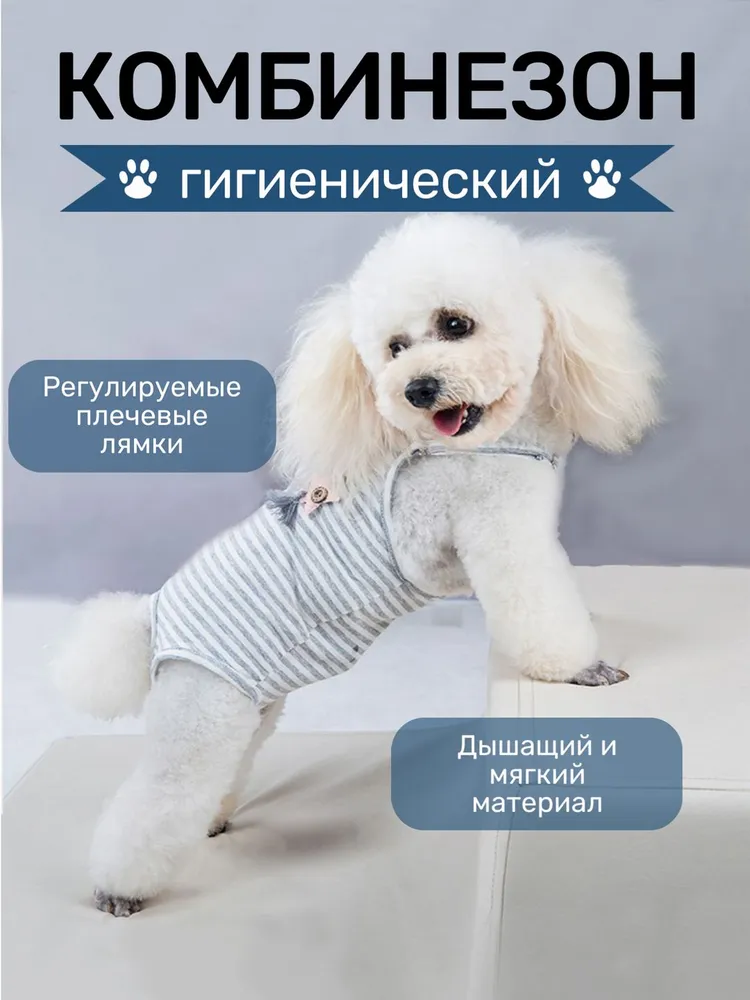 Гигиенический комбинезон для собак и кошек.Идеальное решение для периода течки! Гигиенический комбинезон — это must-have для заботливых хозяев, которые хотят обеспечить комфорт своим питомцам и избавить себя от лишних хлопот.Надежная защита: предотвращает загрязнения, защищает от инфекций и незапланированных вязок.Комфорт для питомца: мягкий и дышащий материал обеспечивает удобство даже при длительном ношении.Удобство для вас: больше никаких пятен на полу, мебели или в салоне авто, а также никакого специфического запаха!Преимущества:Регулируемые лямки: идеальная посадка для питомцев любого размера.Легкость в уходе: комбинезон легко стирается и быстро сохнет.