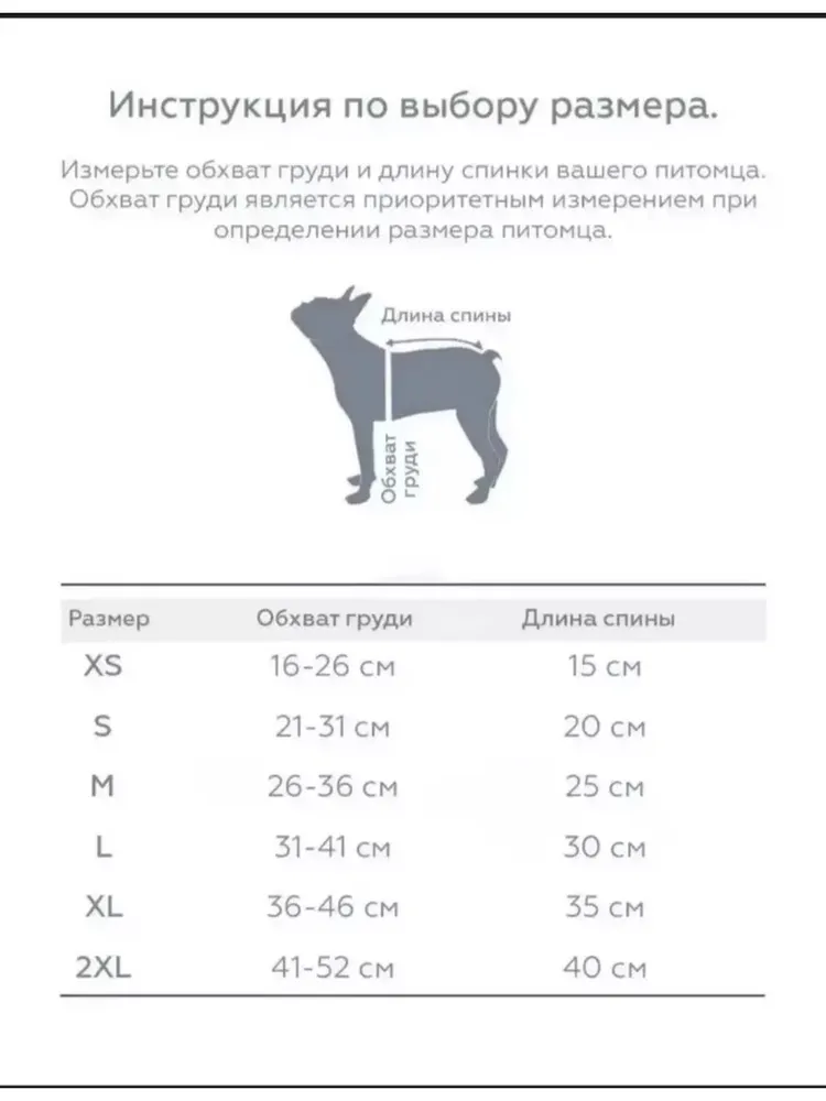 Размер одежды для собаки: