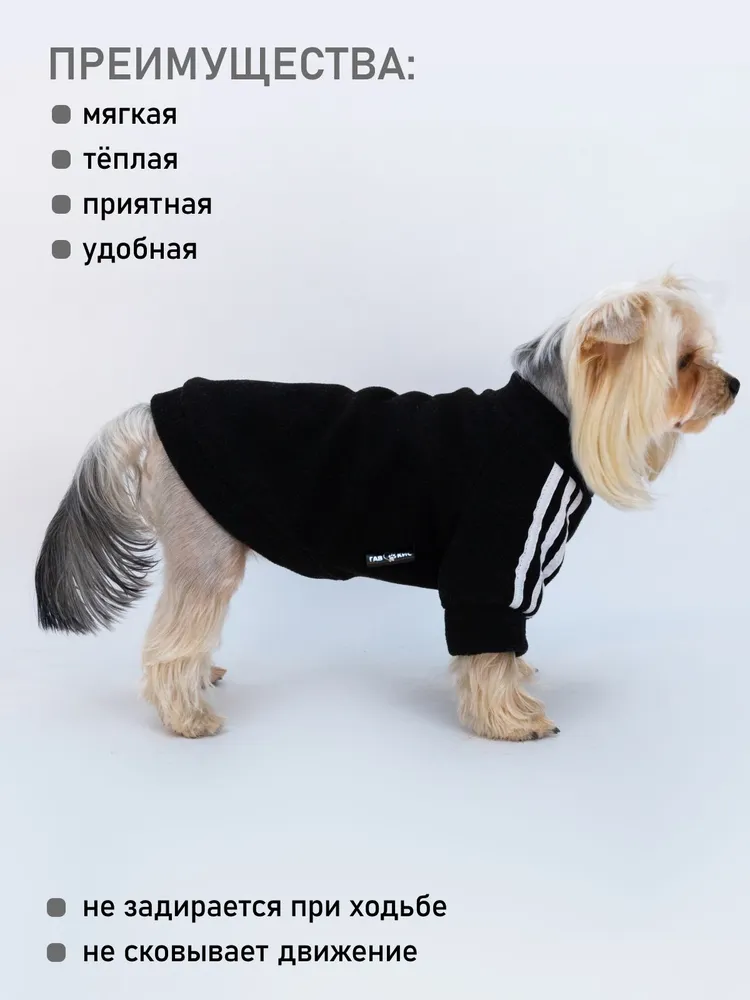 Теплая толстовка из флиса (100% - синтетика) - прекрасное решение для обеспечения комфорта и тепла вашему четвероногому другу во время приятных прогулок!Рекомендации по выбору размера для собак следующие:· XS: длина спинки 26-27 см, вес 1-2 кг.· S: 28-29 см, подходит для чихуахуа и той терьера.· M: 30-31, вес 2-3 кг - для йорка, джек рассела, ши-тцу, мальтезе, японского хина, померанского шпица или карликовой таксы.· L: 32-34 см, вес 3-4 кг, подходит для карликового пуделя, пекинеса, мопса или китайской хохлатой.· XL: 35-37 см;· XXL: длина спинки 38-40.Обратите внимание, размерная сетка находится в фото товара.Перед тем как сделать заказ рекомендуется измерить параметры питомца и выбрать размер согласно таблице.Зоотовар доступен в различных цветах, что позволяет выбрать подходящий вариант для любимца. Пайта надежно защитит его шерсть от загрязнений и пыли, что облегчит уход за питомцем. Выполнена из мягкого и практичного материала - флиса. Ткань отлично сохраняет тепло, обладает прекрасными дышащими свойствами и предотвращает переохлаждение животного. Ваша кошечка или собачка будет защищена от ветра и холода при любой погоде! Флисовая ткань не мнется, быстро сохнет, что делает ее удобной для повседневного использования. Свитер легко поддается уходу и быстро восстанавливает свойства после стирки. Рекомендуется ручная или бережная стирка при температуре 30 градусов. Худи для щенка и котенка можно носить и самостоятельно, и в качестве дополнения к другим вещам. Вы можете сочетать ее с любыми вещами, чтобы создать интересный стильный наряд! Наша кофточка отлично подходит для мелких и средних пород собак, для кошек и котят. Если вы ищете модный наряд для русской голубой кошки, сфинкса и других бесшерстных и короткошерстных пород, наша утепленная толстовка - то, что вам нужно. Порадуйте своего хвостика модной вещицей! Будем рады вашим отзывам.
