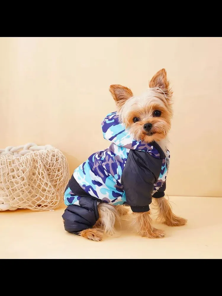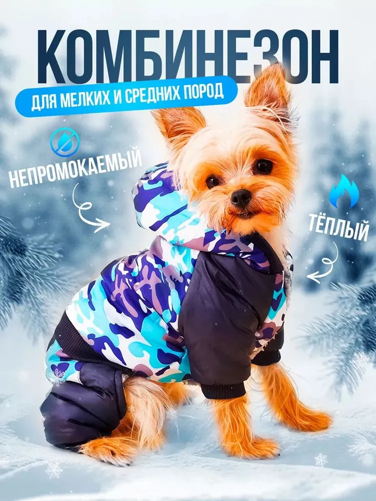 Ваш маленький или средний питомец мерзнет на осенне-зимних прогулках? Подарите ему стиль и надежную защиту от холода, дождя и ветра с нашим утепленным комбинезоном для собак!Этот уютный плюшевый комбинезон с капюшоном – больше, чем просто одежда. Это:1.Тепло и Комфорт: Антихолодная подкладка надежно защитит от мороза. Специальный утеплитель сохраняет тепло даже при -10°С. (✨SEO: теплый комбинезон, антихолодный для собаки, защита от холода, утеплитель для собак)2.Защита от Непогоды: Водонепроницаемая верхняя ткань и плотные швы не пропустят дождь и снег. Капюшон с удобной регулировкой защитит голову. (✨SEO: непромокаемый комбинезон, водонепроницаемая одежда, собака под дождем, капюшон регулируемый)3.Удобная Носка: Эластичные вставки на спинке и лапах, удобные пластиковые замки – комбинезон отлично сидит и не сковывает движения. Легко одевать! (✨SEO: одежда для мелких пород, комбинезон для чихуахуа, одежда для той терьера, одежда для кошек сфинкс)4.Стиль и Качество: Модный камуфляжный принт, гипоаллергенный плюш внутри. Прочные материалы гарантируют долгий срок службы. (✨SEO: стильная одежда собакам, камуфляж для собаки, зимний комбинезон модный, качественная одежда для собак)Идеален для чихуахуа, той-терьера, йорка, шпица и других мелких и средних пород собак! Не дайте питомцу замерзнуть – купите утепленный комбинезон прямо сейчас! (Призыв к действию)