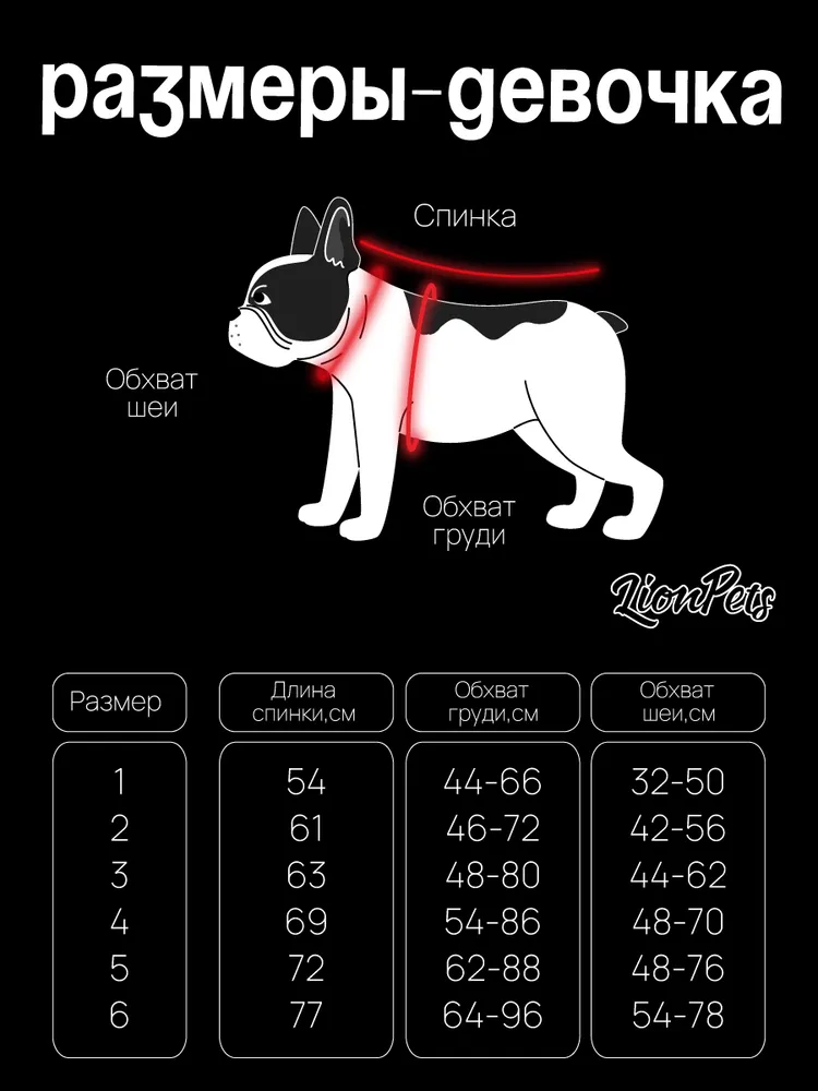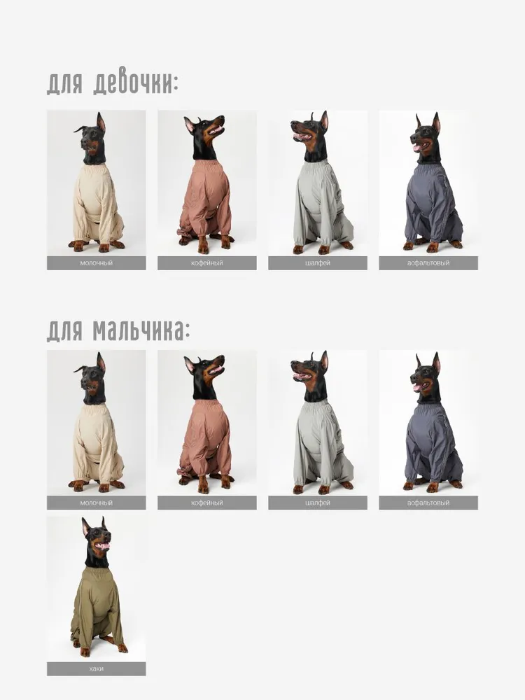 Флисовый комбинезон для собак LionPetsАртикулы: 1658010450, 1658009875, 1658011399, 1658010904.Флисовый комбинезон для собак от российского производителя LionPets - отличный выбор для защиты вашего питомца от ветра и холода вашей во время прогулок.Утепленный комбинезон из мягкого флиса подходит на осень, зиму, весну для собак всех пород: мелких, средних и крупных пород собак.У теплого комбинезона на спине пришита длинная молния, благодаря которой он легко и быстро одевается и снимается.Комбинезон оснащен эластичными резинками для элегантной посадки по всему телу. На каждой лапке расположены манжеты.Зимний комбинезон для средних и крупных пород LionPetsАртикулы: 1160018477, 1160018875, 1160019027, 1160018973, 1160019001, 1160018600, 1160019066, 1160018945, 1160019020, 1160018954, 1160018985, 1160018270.Размерный ряд: 6 размеров