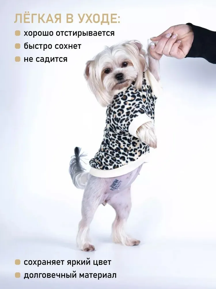 Теплая толстовка из флиса (100% - синтетика) - прекрасное решение для обеспечения комфорта и тепла вашему четвероногому другу во время приятных прогулок!Рекомендации по выбору размера для собак следующие:· XS: длина спинки 26-27 см, вес 1-2 кг.· S: 28-29 см, подходит для чихуахуа и той терьера.· M: 30-31, вес 2-3 кг - для йорка, джек рассела, ши-тцу, мальтезе, японского хина, померанского шпица или карликовой таксы.· L: 32-34 см, вес 3-4 кг, подходит для карликового пуделя, пекинеса, мопса или китайской хохлатой.· XL: 35-37 см;· XXL: длина спинки 38-40.Обратите внимание, размерная сетка находится в фото товара.Перед тем как сделать заказ рекомендуется измерить параметры питомца и выбрать размер согласно таблице.Зоотовар доступен в различных цветах, что позволяет выбрать подходящий вариант для любимца. Пайта надежно защитит его шерсть от загрязнений и пыли, что облегчит уход за питомцем. Выполнена из мягкого и практичного материала - флиса. Ткань отлично сохраняет тепло, обладает прекрасными дышащими свойствами и предотвращает переохлаждение животного. Ваша кошечка или собачка будет защищена от ветра и холода при любой погоде! Флисовая ткань не мнется, быстро сохнет, что делает ее удобной для повседневного использования. Свитер легко поддается уходу и быстро восстанавливает свойства после стирки. Рекомендуется ручная или бережная стирка при температуре 30 градусов. Худи для щенка и котенка можно носить и самостоятельно, и в качестве дополнения к другим вещам. Вы можете сочетать ее с любыми вещами, чтобы создать интересный стильный наряд! Наша кофточка отлично подходит для мелких и средних пород собак, для кошек и котят. Если вы ищете модный наряд для русской голубой кошки, сфинкса и других бесшерстных и короткошерстных пород, наша утепленная толстовка - то, что вам нужно. Порадуйте своего хвостика модной вещицей! Будем рады вашим отзывам.