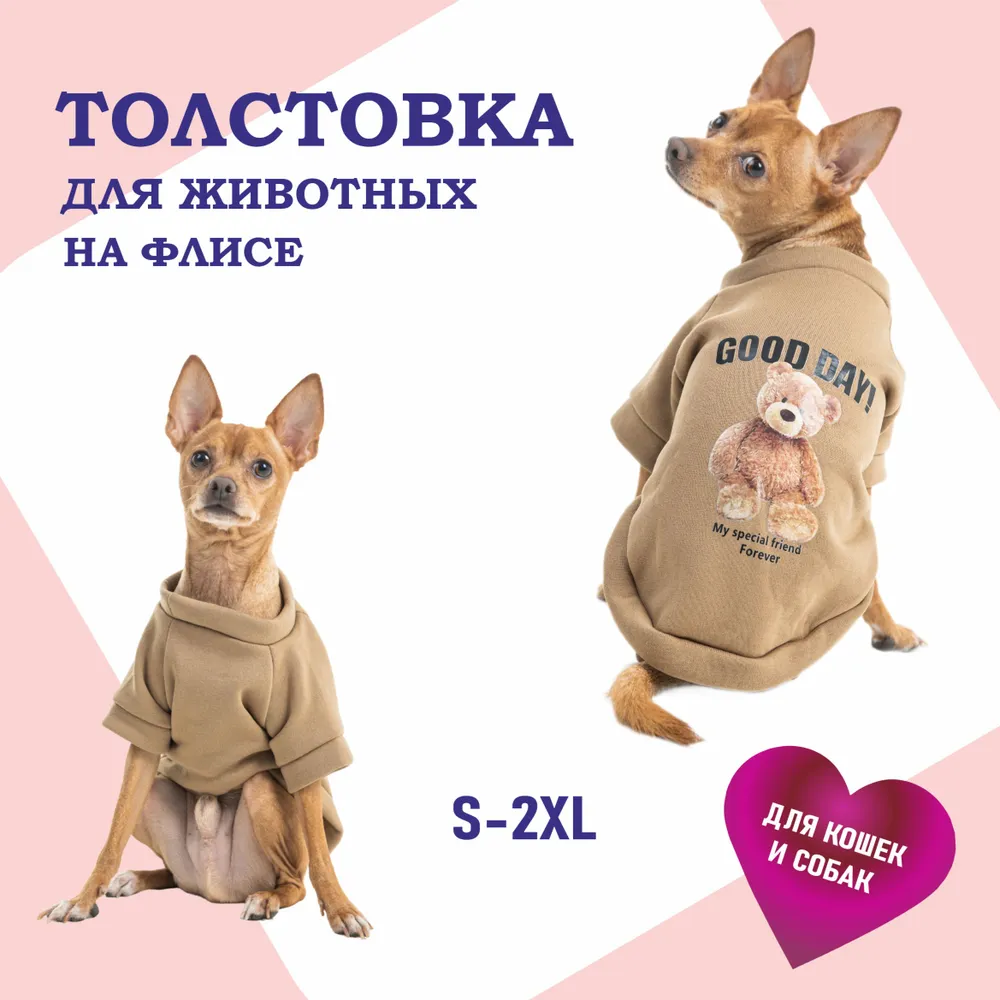 Толстовка утепленная в коричневом цвете с милым мишкой принтом - отличный выбор для вашего любимца в прохладные дни! Этот стильный и удобный аксессуар обеспечит вашего питомца теплом и комфортом во время прогулок или игр на свежем воздухе.Изготовленная из качественных материалов, эта утепленная толстовка обеспечит защиту от холода и влаги, а также позволит вашему питомцу чувствовать себя уютно и защищенно. Прекрасное сочетание удобства и стиля делает эту футболку отличным выбором для собак любого размера и породы.Преимущества1. Удобство и комфорт: утепленная толстовка обеспечит вашей собаке тепло и защиту от холода, что особенно важно в холодное время года.2. Стильный дизайн: коричневая толстовка с милым мишкой добавит индивидуальности и стиля вашему питомцу.3. Прочность и долговечность: качественные материалы и отличное исполнение гарантируют долгий срок службы товара.4. Легкость ухода: футболка легко стирается и быстро сохнет, что облегчает уход за ней.5. Защита от загрязнений: футболка поможет избежать загрязнения шерсти вашей собаки, что сохранит ее внешний вид чистым и ухоженным.