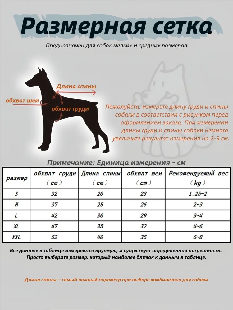 Уютный комбинезон для собак малых и средних пород из мягкого полярного флиса! Идеальная одежда для прогулок в любую погоду – теплая зимой, дышащая весной и осенью. Удобная застежка-молния позволяет легко надевать и снимать комбинезон. Высокое качество материала обеспечивает комфорт и защиту от холода. Подходит для такс, йорков, чихуахуа и других мелких пород. Стильный дизайн и практичность – ваш питомец будет в тепле и выглядеть модно!🔹 Материал: полярный флис (мягкий, гипоаллергенный)🔹 Застежка: надежная молния🔹 Сезонность: всесезонный (осень-зима-весна)🔹 Размеры:S, M, L, XL, XXL (подробная размерная сетка в описании)Подарите своему любимцу комфорт и тепло в любую погоду!